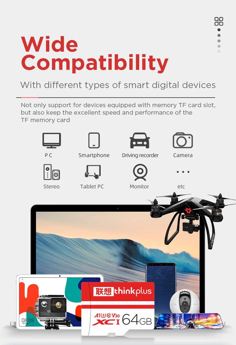 With a solid commitment to quality, the Thinkplus Mini SD Card Class 10 TF Flash Card 32GB-256G ensures your files are safe and accessible. Enhance your photography, expand your device storage, or use it for drones and monitoring systems. 5. High Capacity SD Card