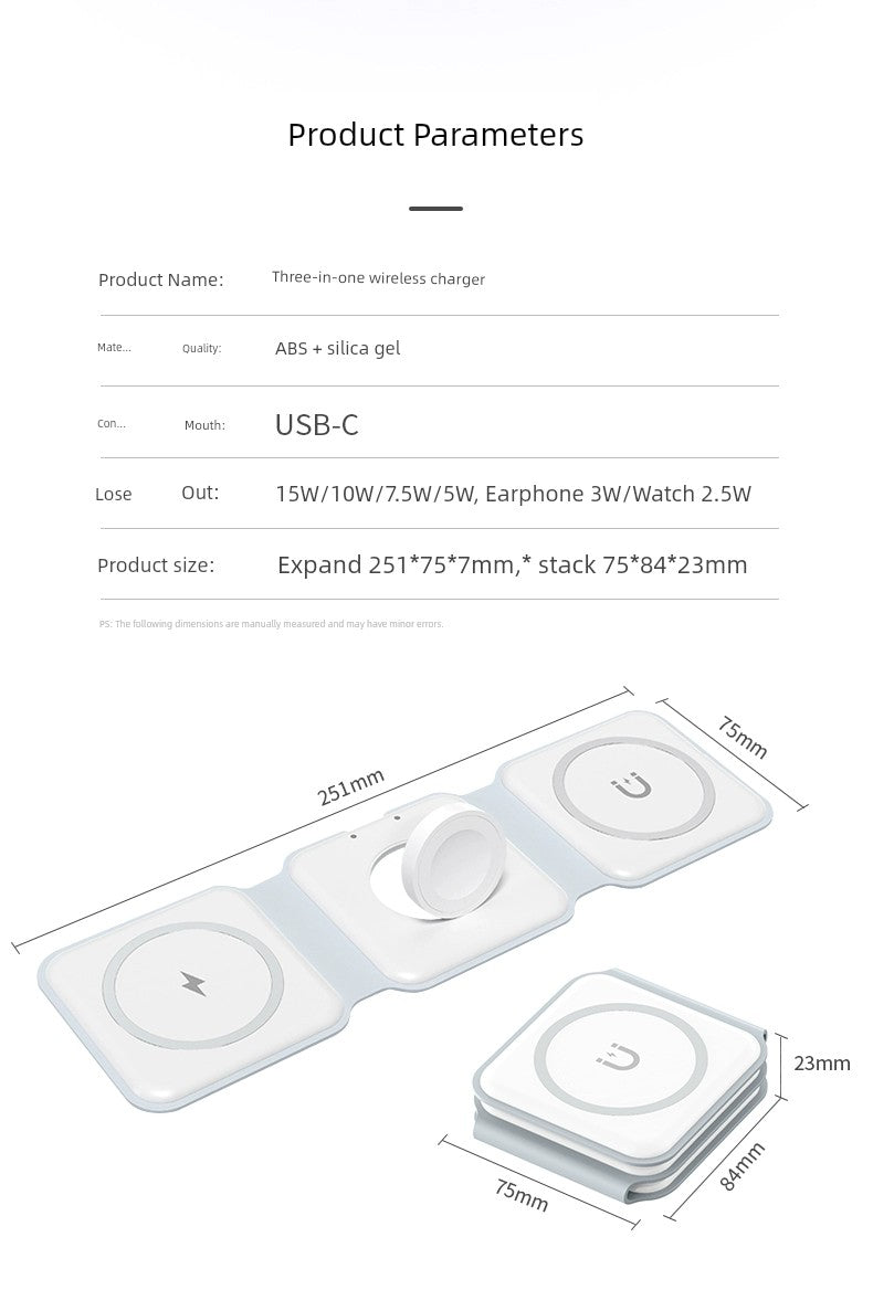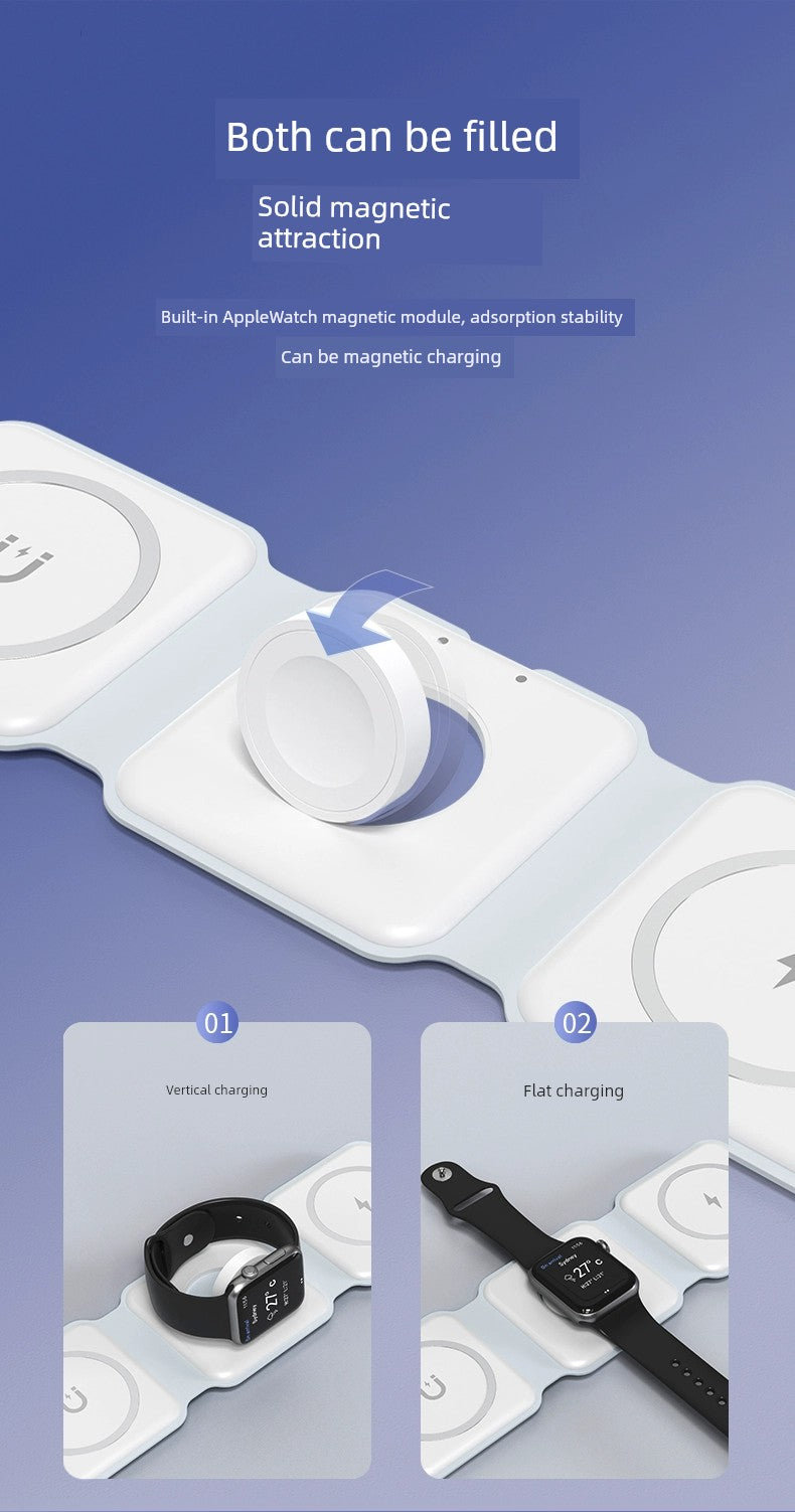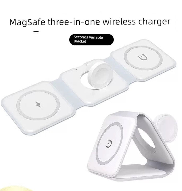 The Three-in-One Wireless Charger for Apple 15/13 and Watch is not just a charging station; it's a lifestyle upgrade. Compact and functional, it's perfect for home, office, or travel. Say goodbye to messy cables and enjoy a clutter-free charging experience.