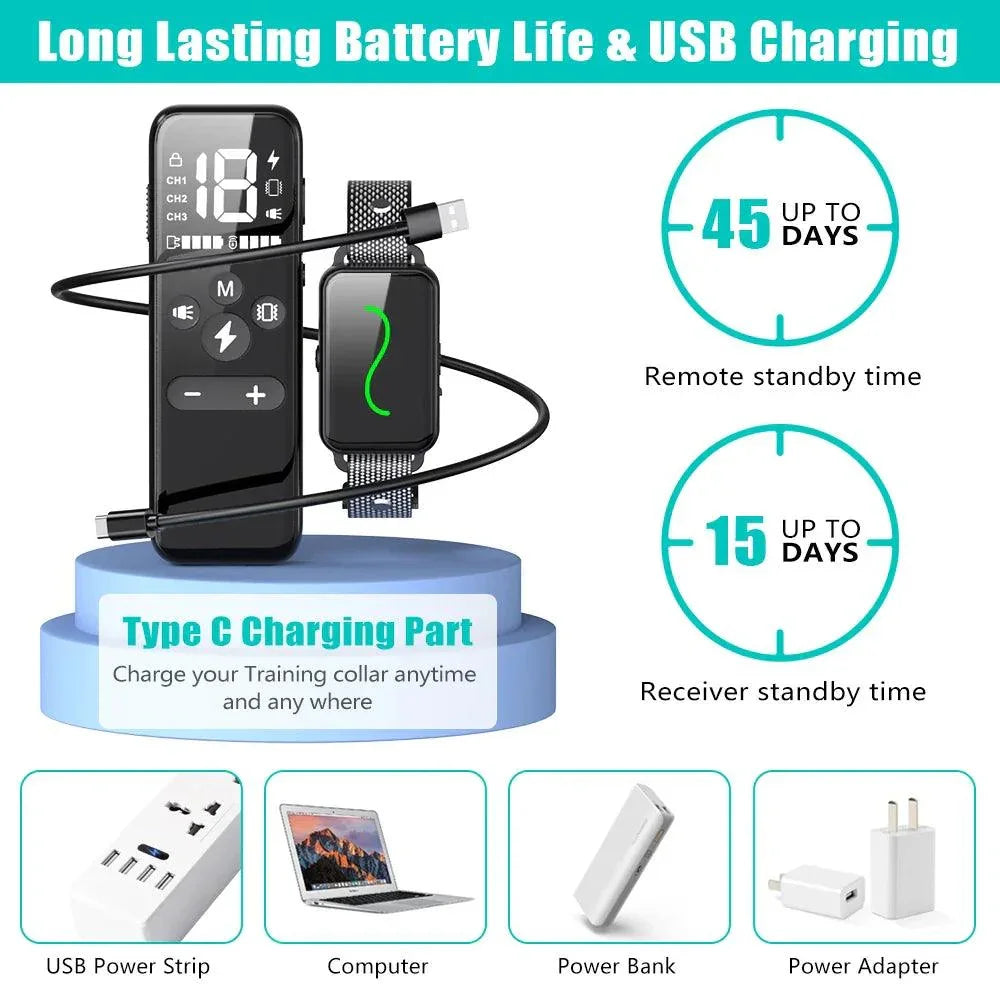 • Rechargeable: Forget about replacing batteries. This collar is always ready for use!