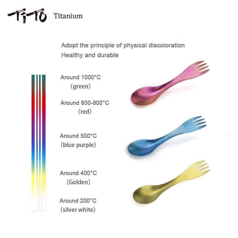 Titanium Spork Ultralight for Camping Hiking Travel Gear. This innovative 2-in-1 portable tableware is crafted from premium titanium, offering unmatched durability without adding unnecessary weight to your pack.