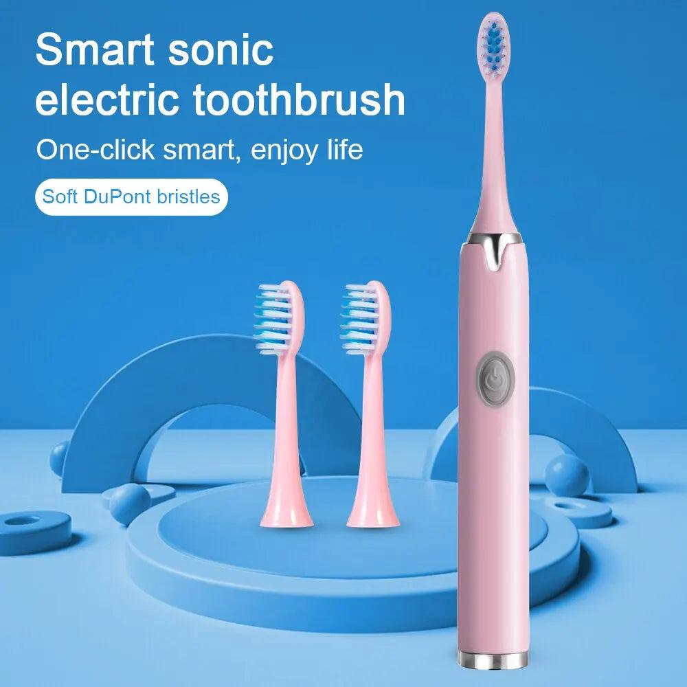 Sonic Electric Toothbrush with Replaceable Heads Waterproof Design for Couples