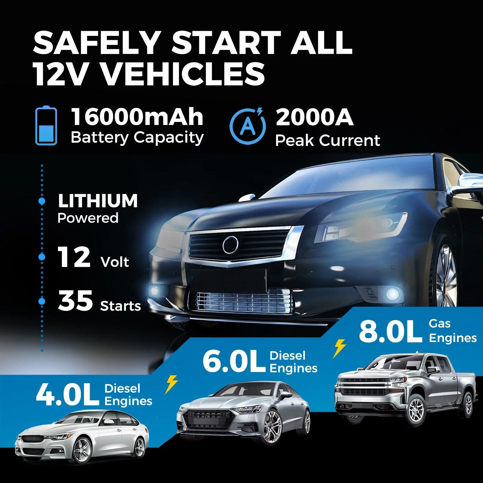Don’t let a dead battery derail your plans. Invest in the Topdon High-Powered 2000A Jump Starter Car Power Bank and travel with peace of mind. It's perfect for cars, trucks, and even boats. Order now to ensure you're always ready for any situation!