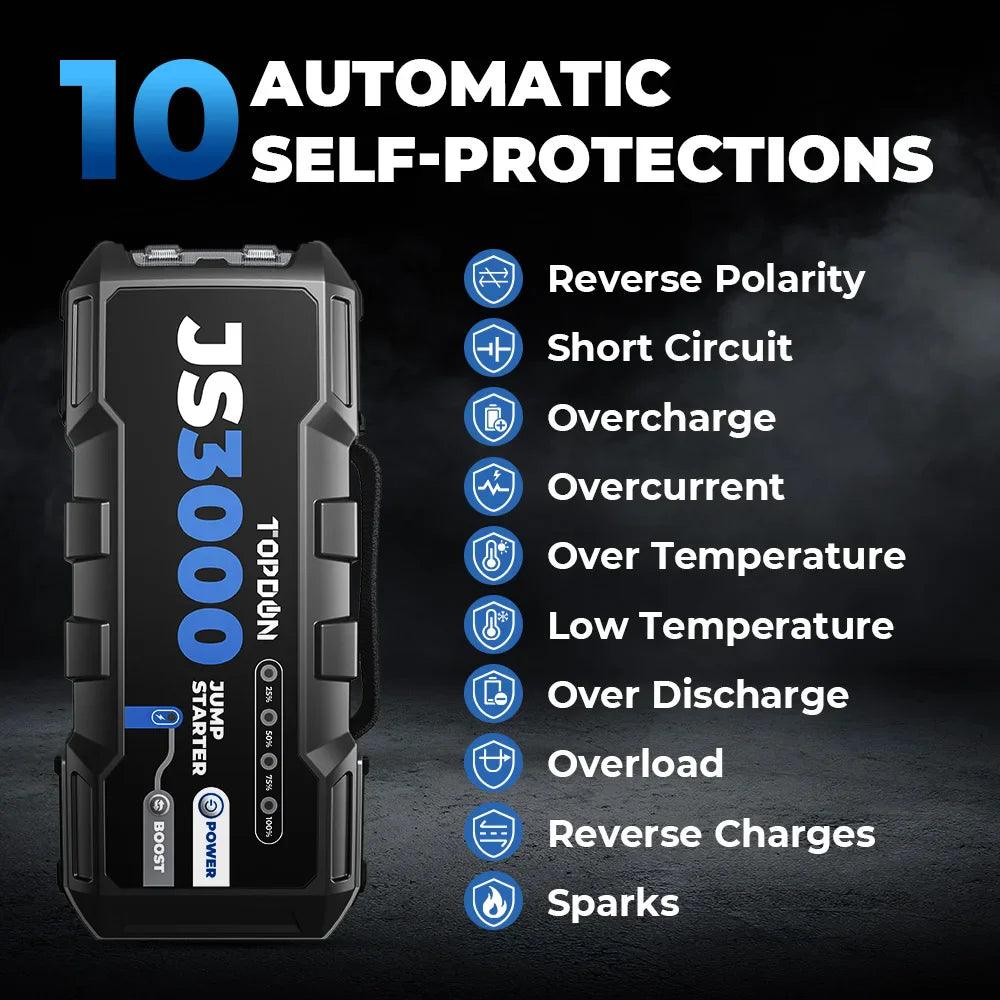 Whether commuting to work or embarking on an adventurous road trip, the Topdon JS3000 3000A Portable Jump Starter Power Bank Essential ensures you’ll never be left stranded. With its robust power, versatility, and exceptional safety features, this jump starter is a must-have gadget for every driver. Experience peace of mind with reliable power and stay connected wherever your journey takes you!