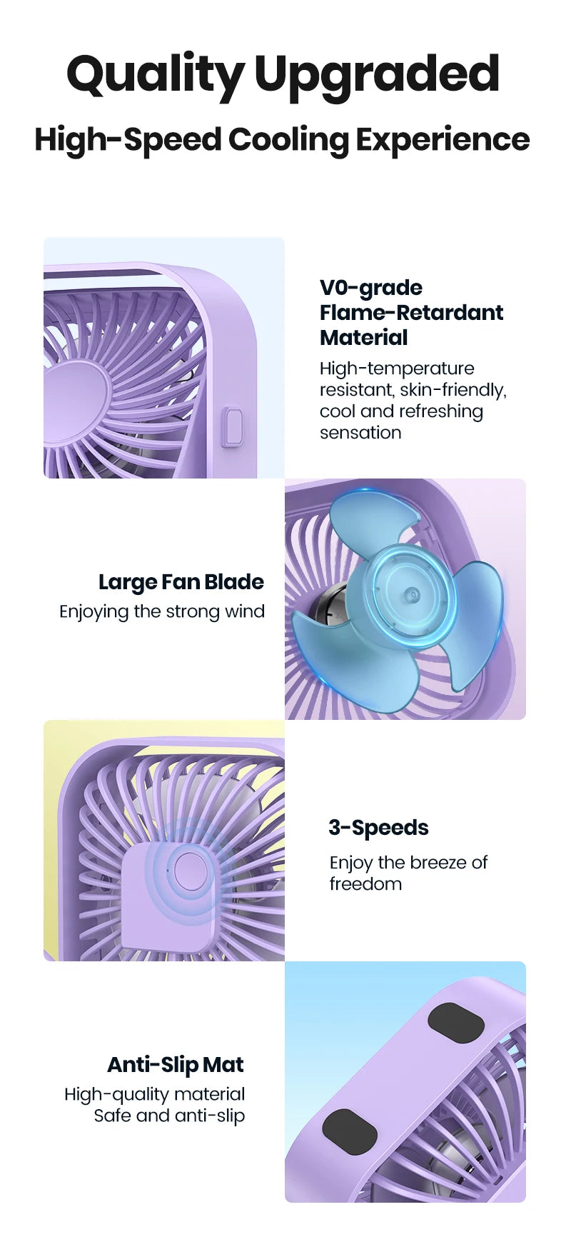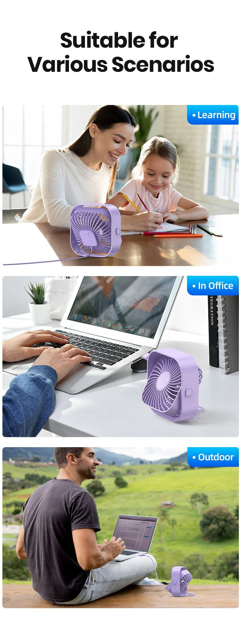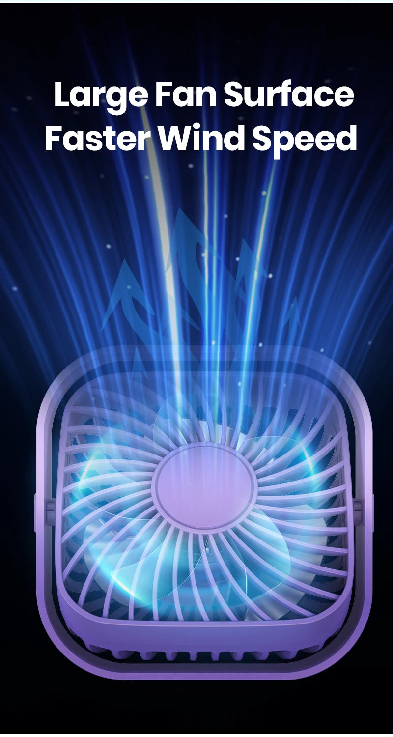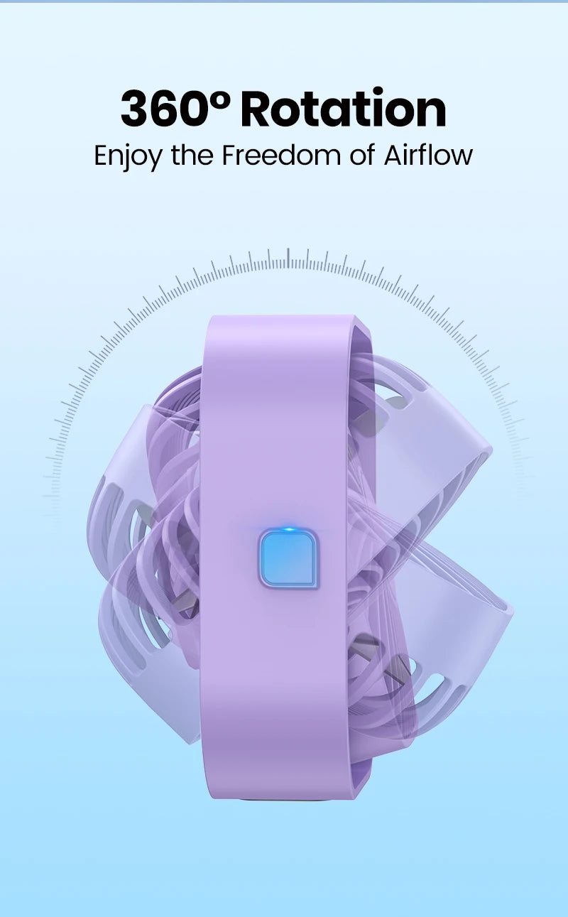 • 360° Rotatable Head: Enjoy optimal air circulation from any angle. The flexible design makes it perfect for various settings—including home, office, and travel.