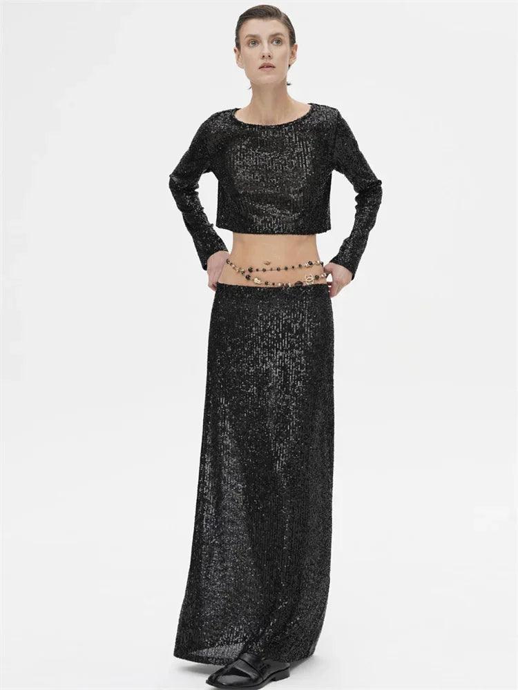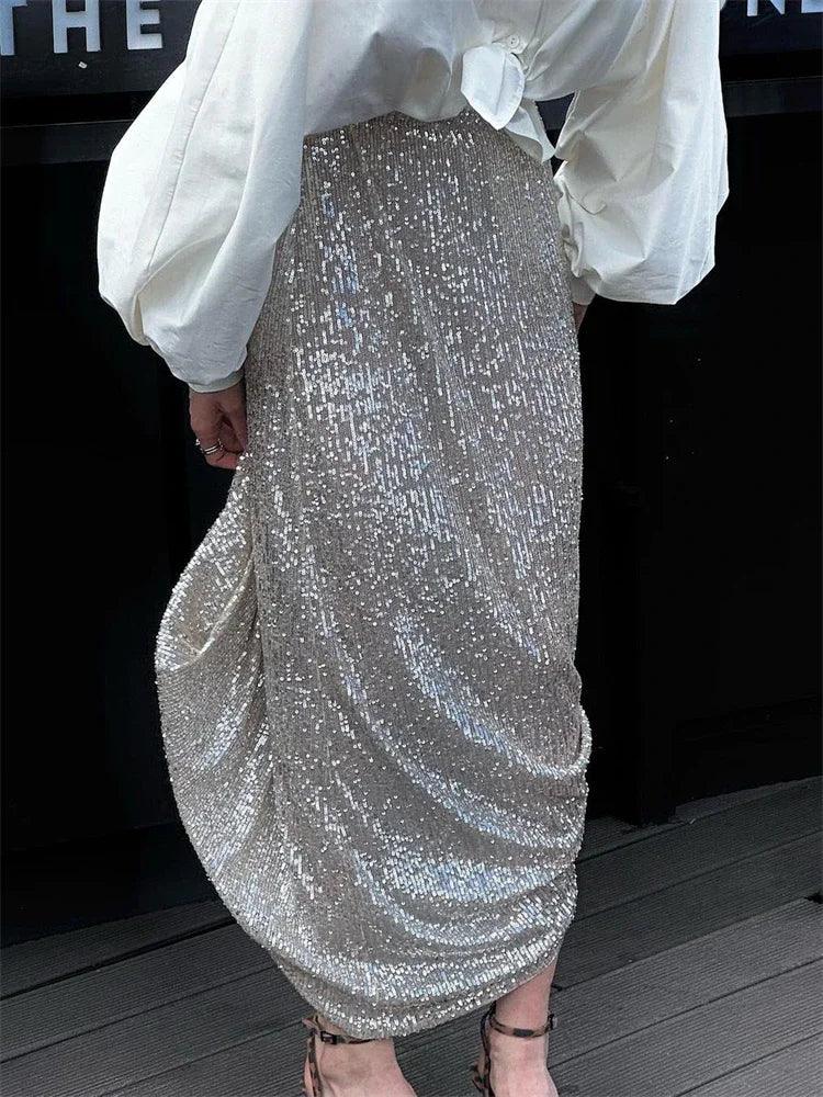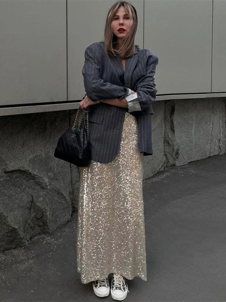 Sequin Maxi Skirt: Glamorous High Waist Glitter Elegance