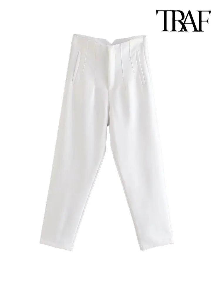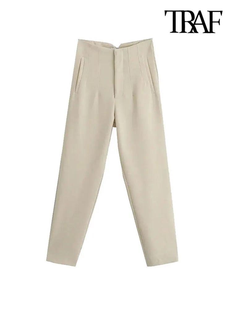 Elevate your fashion game with our Vintage High-Waist Zipper Fly Trousers for Stylish Women, designed to combine functionality and chic style. Perfect for the modern woman, these trousers promise both comfort and sophistication.