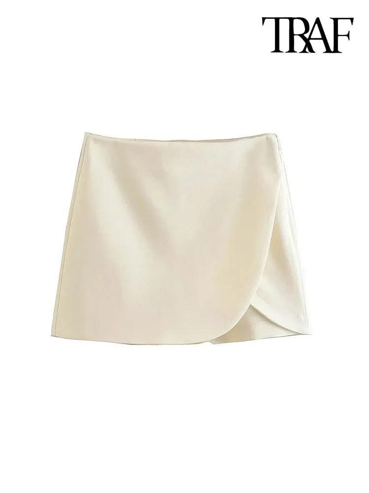 Vintage High Waist Zippered Skort Shorts Elegant Choice