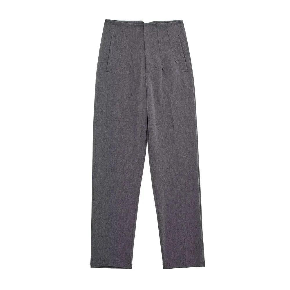 Vintage High Waist Zipper Pencil Pants Classic Women's Trousers