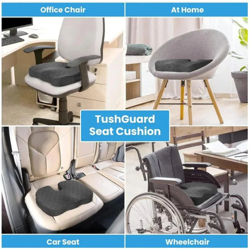 A: This coccyx cushion is ideal for anyone who sits for extended periods—office workers, remote workers, students, and travelers. It targets tailbone discomfort and sciatic tension with ergonomic support, memory foam comfort, and a stable base for all-day seating at a desk, in a car, or on a plane.