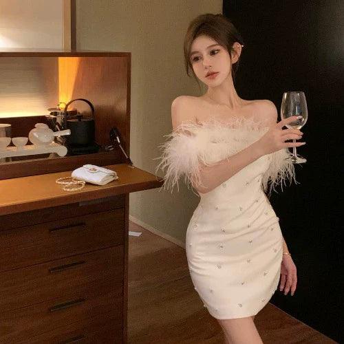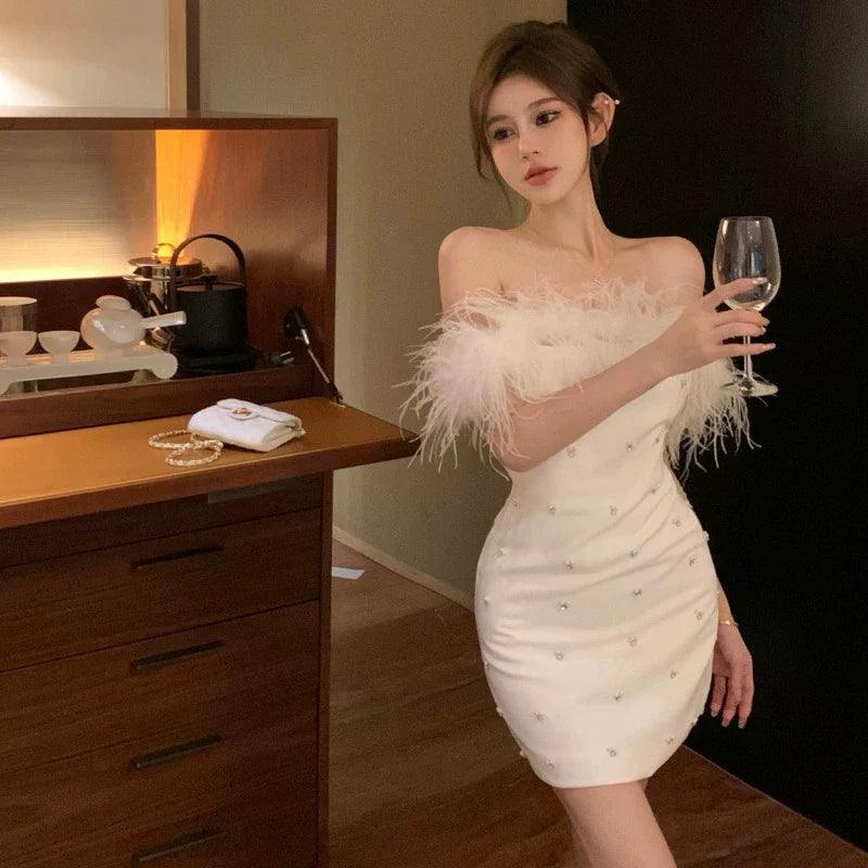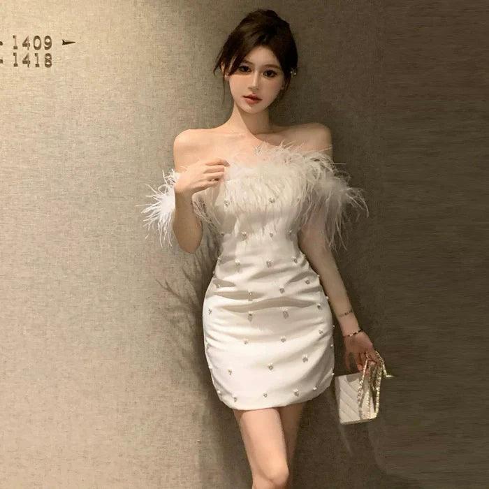 Step into the spotlight with the Sophisticated Korean Style Fur Collar Dress Elegant Bead Embellishments, a stunning fusion of elegance and modern fashion. This remarkable piece is meticulously designed to ensure you stand out at any event, making it a must-have addition to your wardrobe.