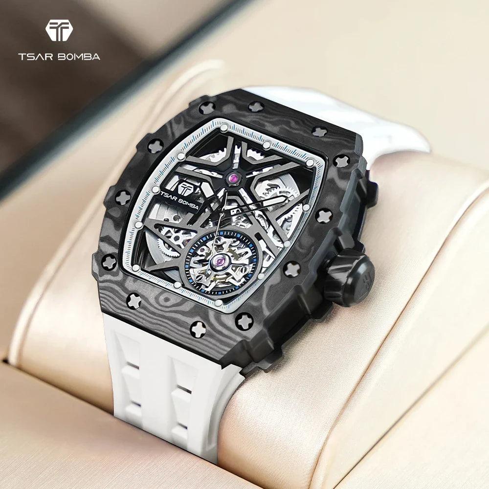 Discover the unique qualities of the TSAR BOMBA Carbon Fiber Mens Automatic Waterproof Watch: