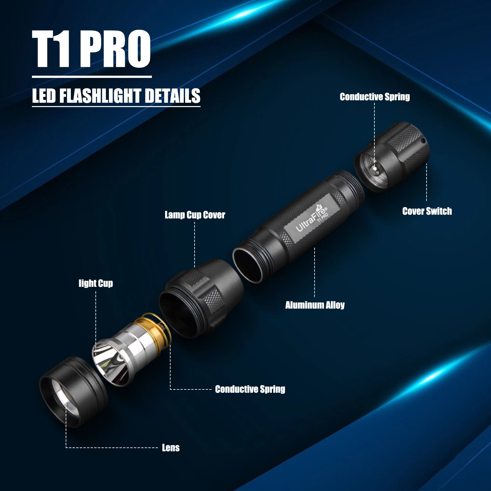 The UltraFire T1 Pro Flashlight is designed for those who demand both reliability and brightness. Its compact size makes it easy to carry, ensuring you’re never left in the dark.