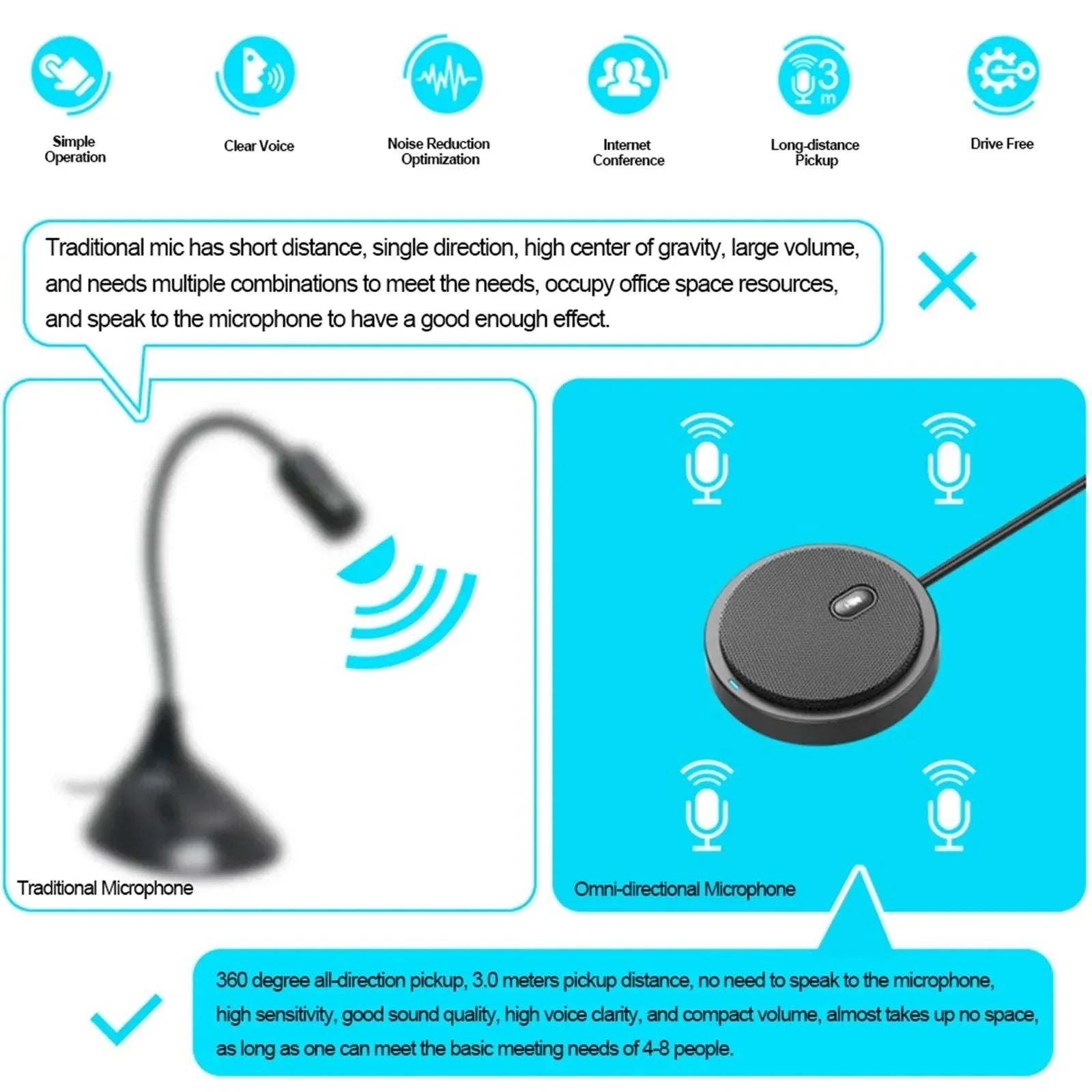 • 360-Degree Sound Pick-Up: Perfect for group discussions, its omnidirectional design picks up sound from all directions.