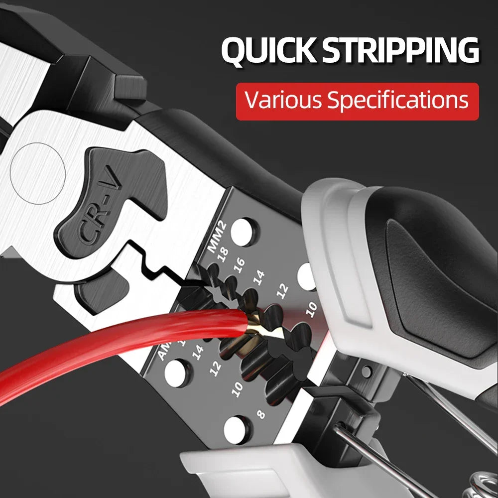A: Built with stainless steel components and a silica gel grip, these pliers resist corrosion and wear while staying comfortable in your grip. The stainless steel core secures long-lasting cutting edges, while the ergonomic handle enhances grip stability during demanding tasks like stripping tough insulation or crimping multiple wire gauges.