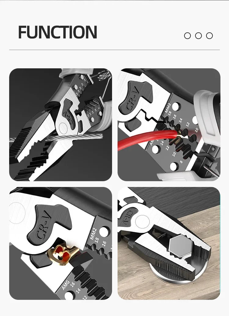 • Multifunctional Design: Efficiently switch between cutting, crimping, and needle-nose functions to tackle any electrical project.