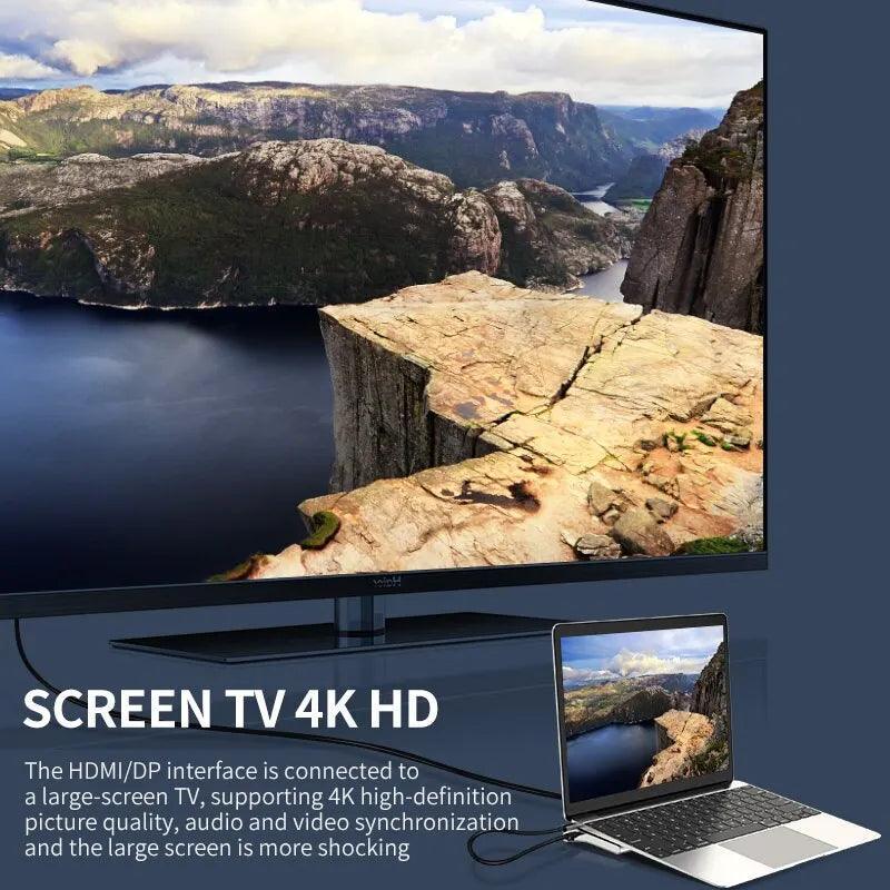 • Multi-Functional Docking Station: Combines 4K HDMI, DP, VGA, USB 3.0, SD/TF reader, 100W PD, 3.5mm audio, and RJ45 Ethernet support.