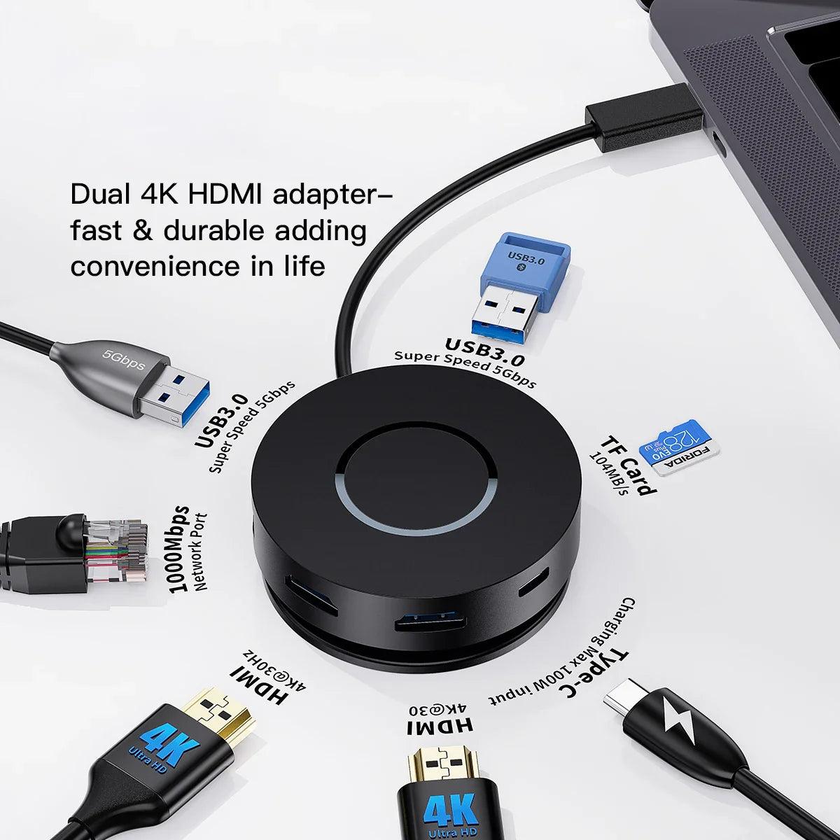 USB C Docking Station 7-in-1 USB C Hub with Dual HDMI Ports