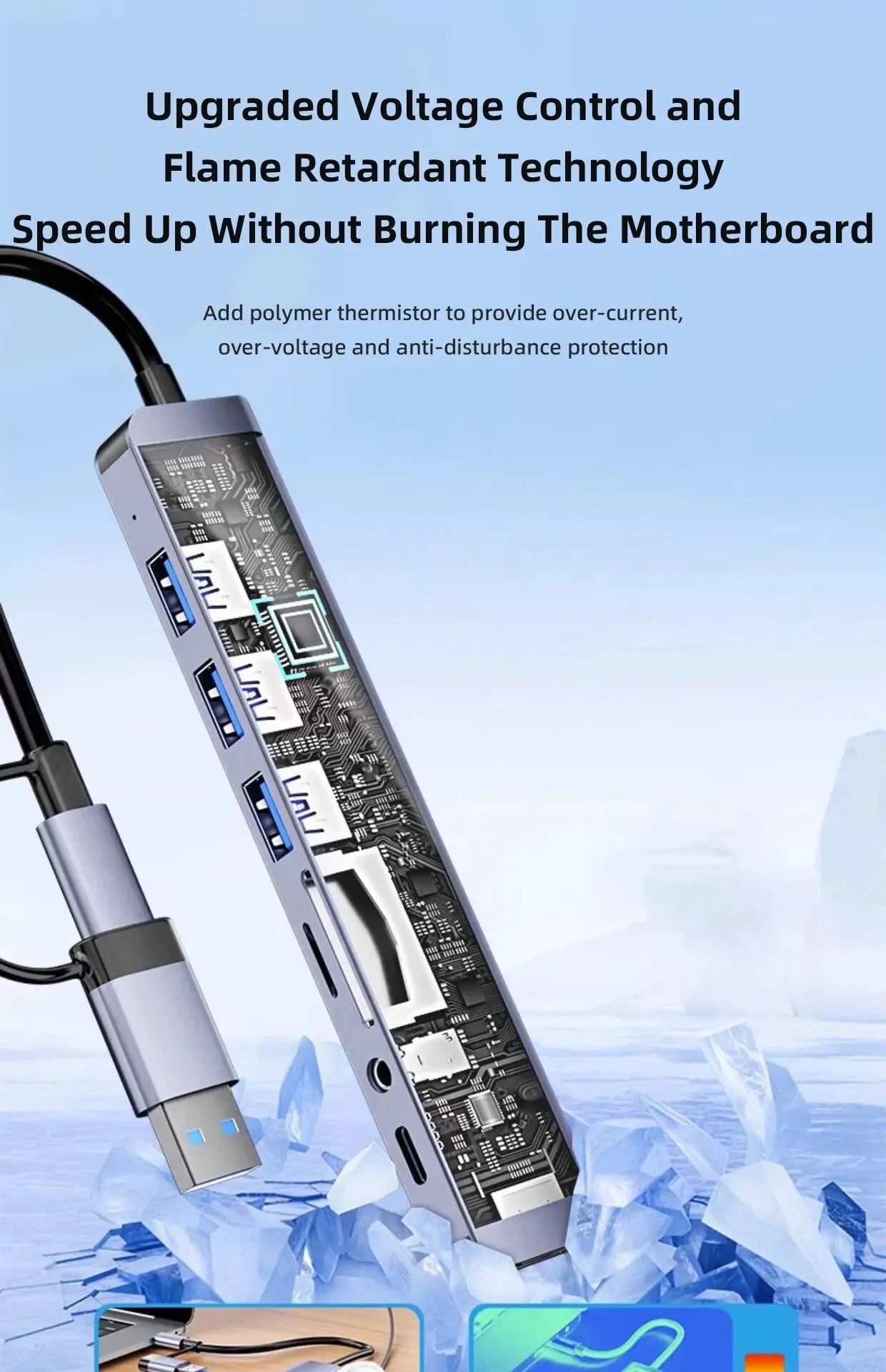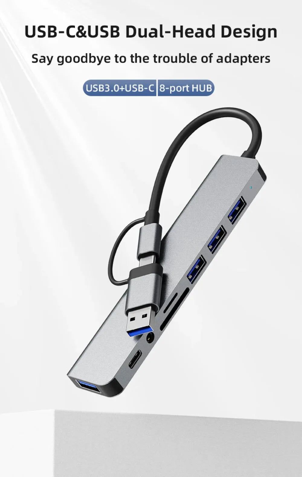 Enhance your connectivity with the USB C Hub USB Splitter 8 in 2 USB Extender with 4 Ports. This versatile hub instantly expands your device's functionality, allowing you to connect multiple peripherals effortlessly. Perfect for home and on-the-go use, it’s designed to meet the needs of professionals and students alike.