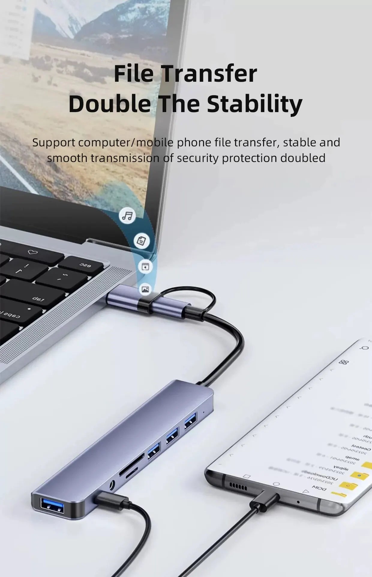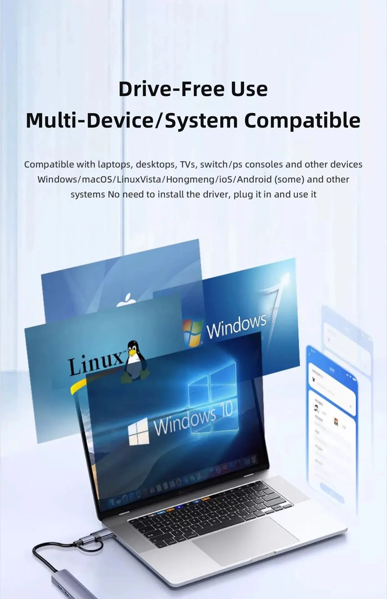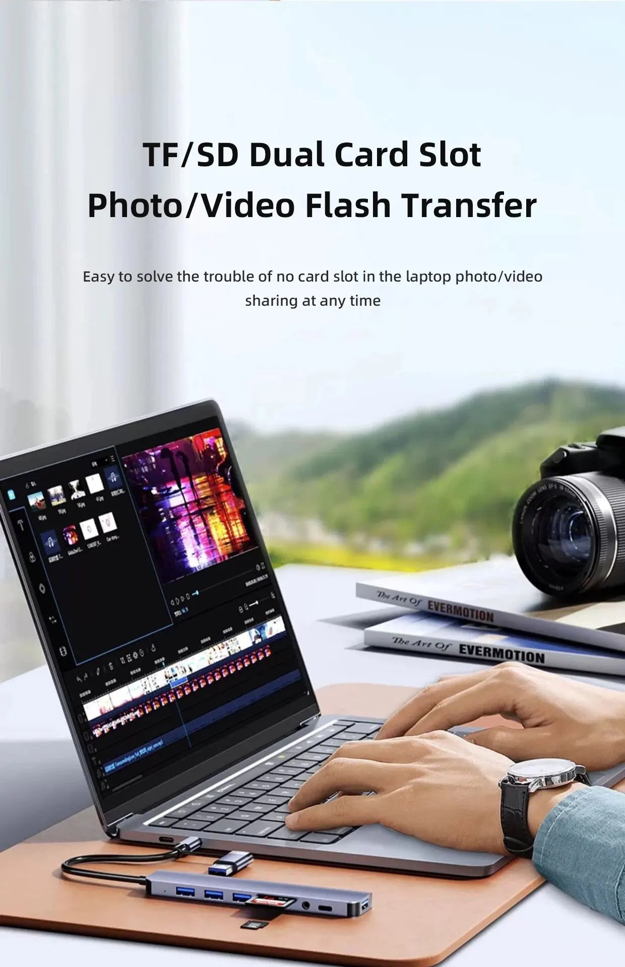 • 1. Versatile Connectivity: Equipped with USB Ports, a USB-C port, TF/SD card reader, and audio output, this hub seamlessly connects various devices.