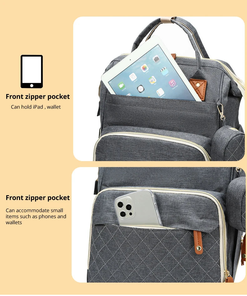 Crafted from high-quality materials with thoughtful design features, our USB Mummy Bag stands out from typical diaper bags. Whether you’re embarking on a short trip or a day-long adventure, this bag enhances your parenting experience with its convenience and style.
