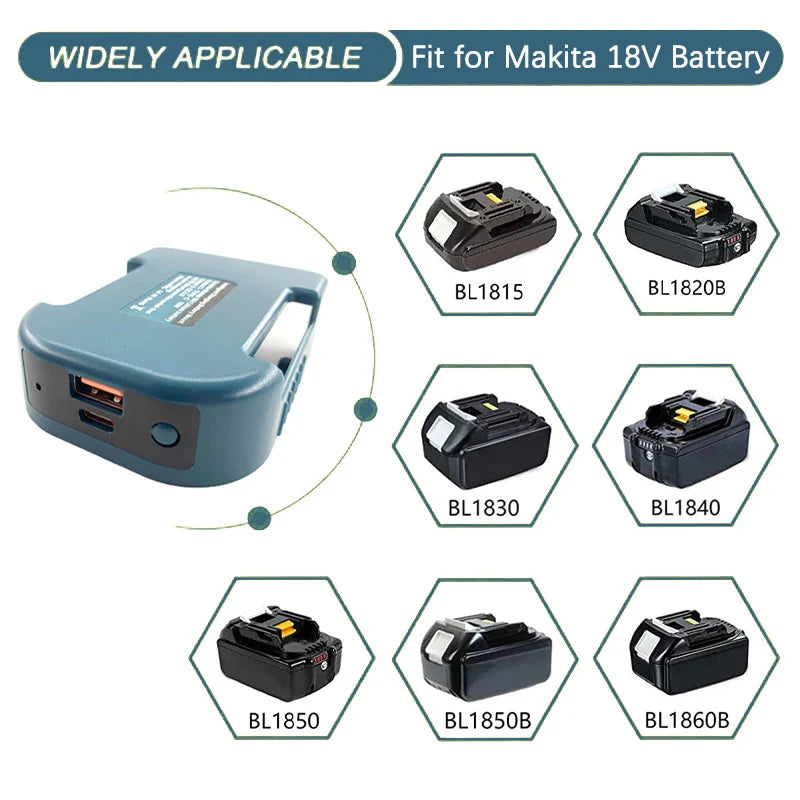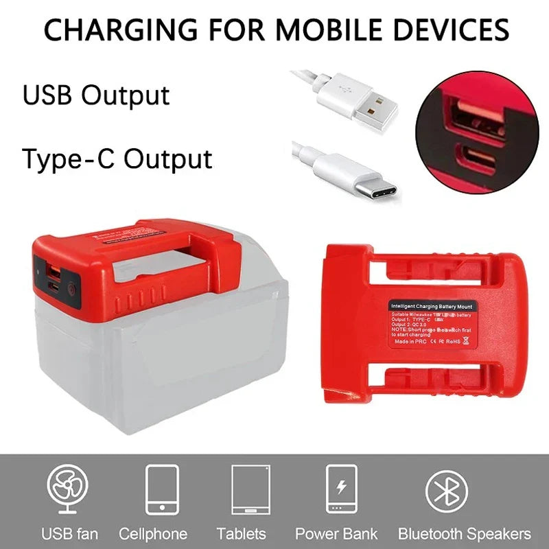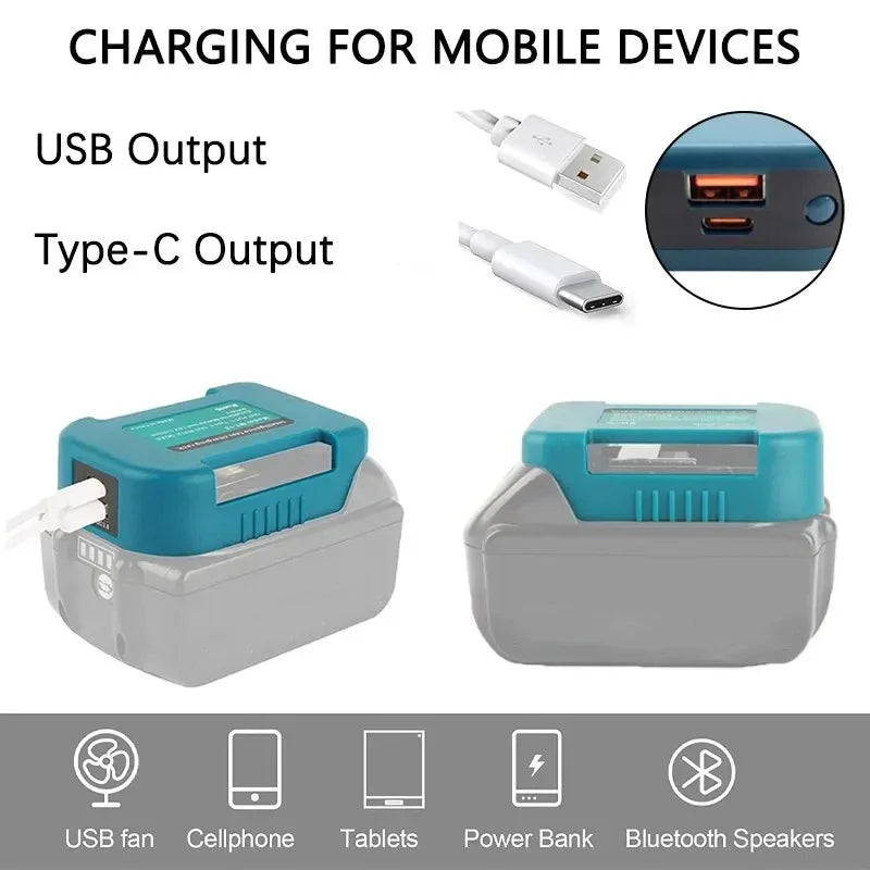 Portable USB Charger Adapter for Makita Dewalt Milwaukee Batteries