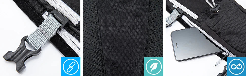 • Breathable Material: Made from high-density mesh, the vest enhances airflow and wicks moisture, keeping you comfortable during your adventure. 3. Breathable Hydration Vest