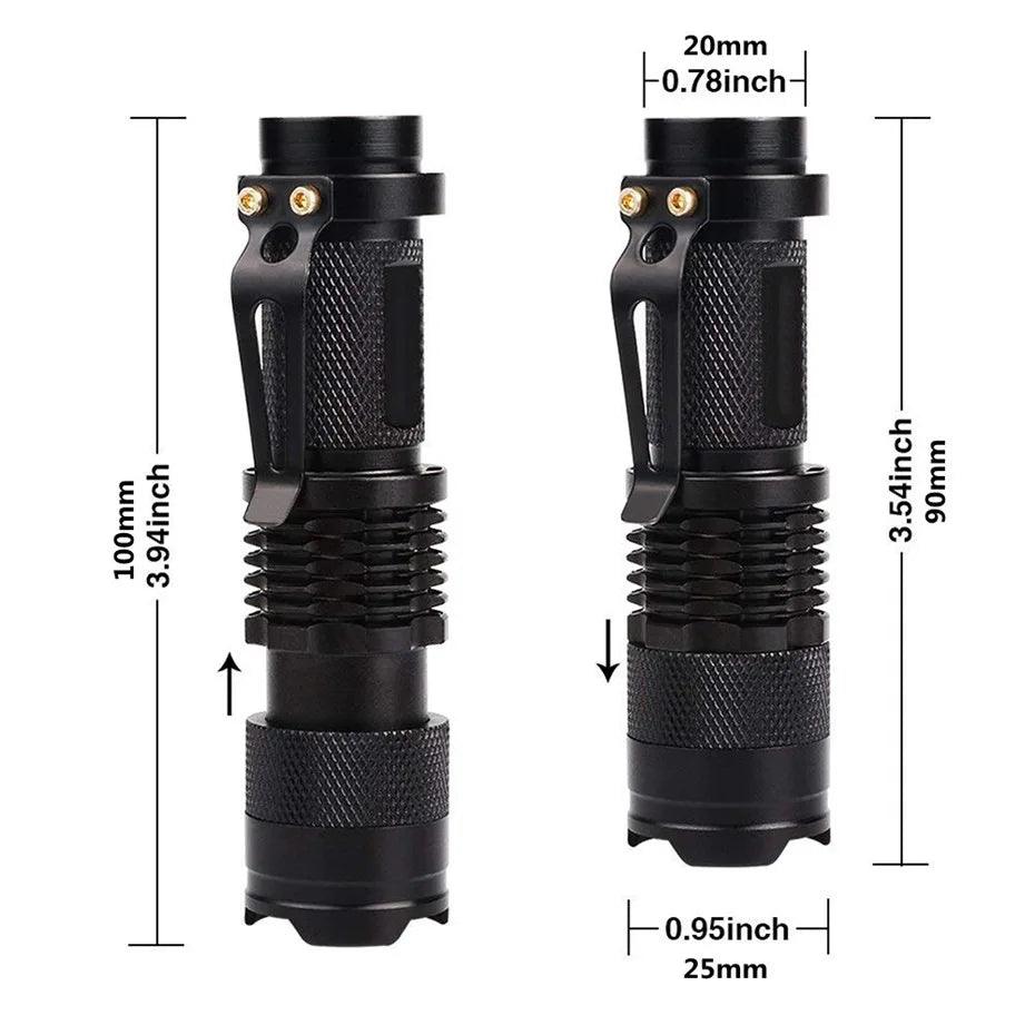 • Zoomable Functionality: Switch from narrow to wide beam focus for precise illumination.