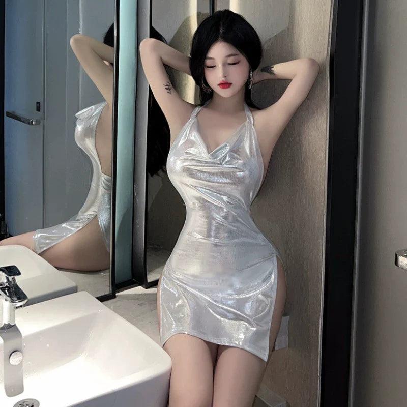 V Neck Halter Slit Dress for Summer Chic Fashion Style