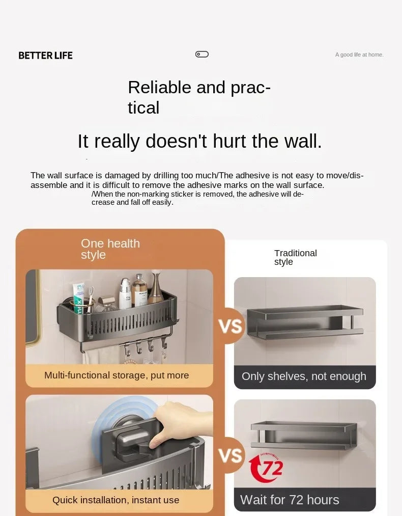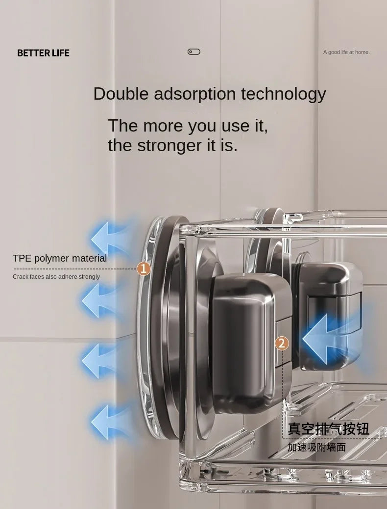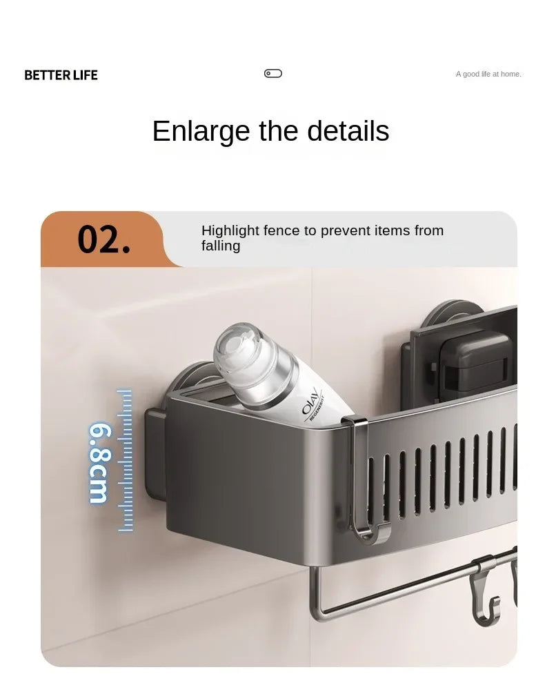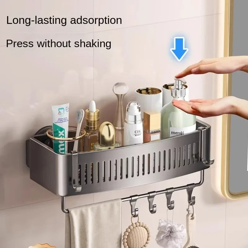 Transform your bathroom into a clutter-free oasis with our Vacuum Suction Cup Bathroom Shelf Wall Mounted Aluminum Organizer. This innovative storage solution combines functionality and style, making it an essential addition to any modern bathroom.