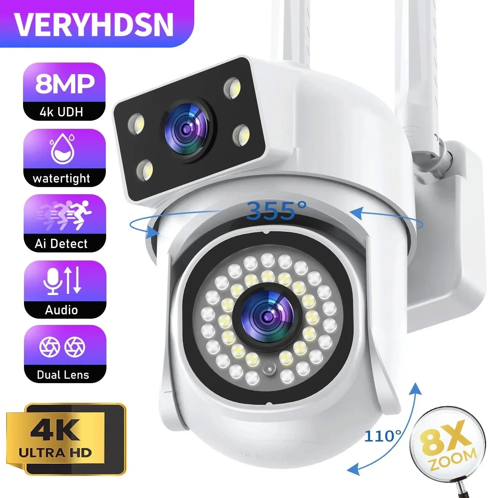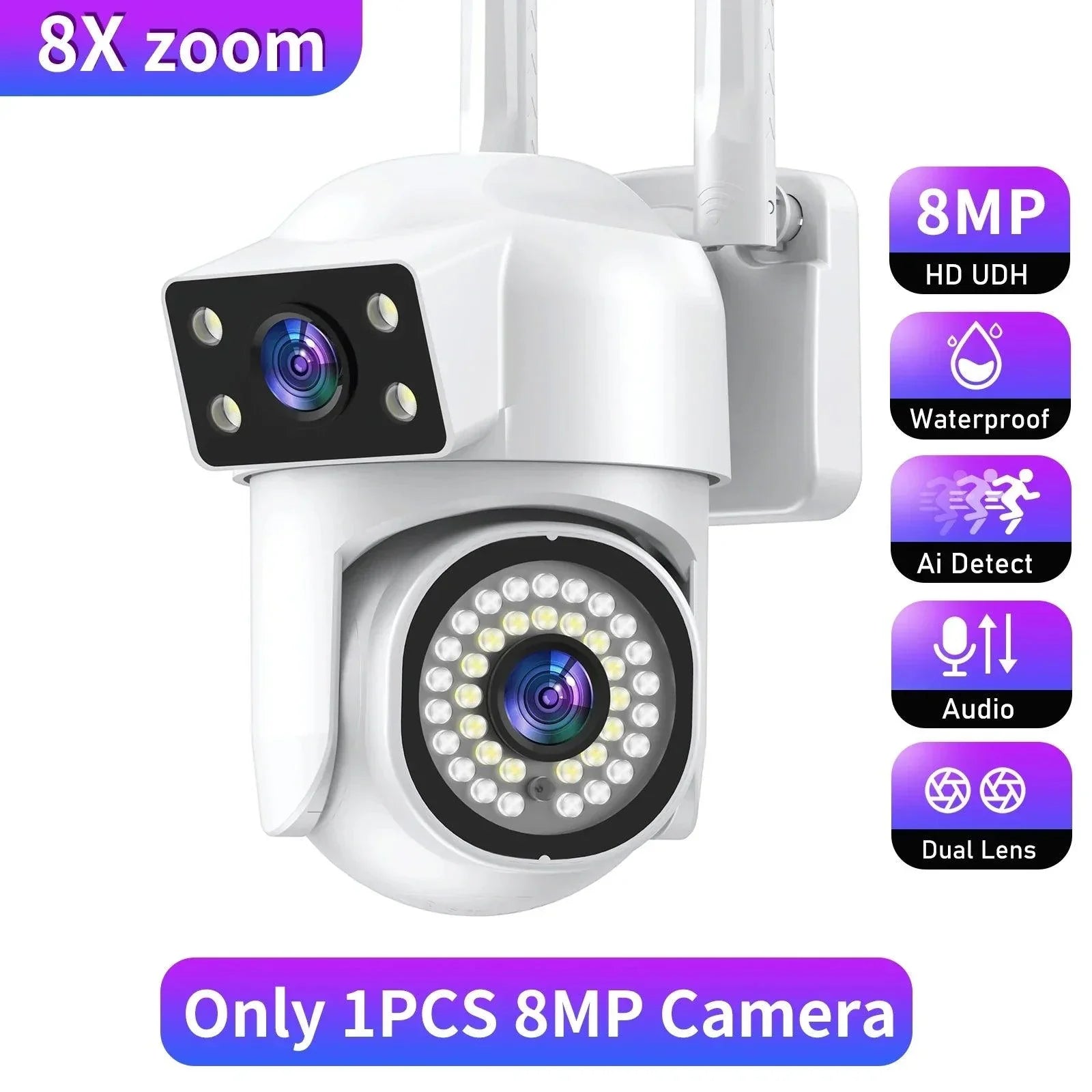 Ultimate Outdoor Security Camera Enhanced Surveillance delivers unmatched outdoor protection with dual lens performance, 8x digital zoom, IP66 weatherproof durability, and two-way audio for real-time alerts. This robust system combines fixed and PTZ views on a dual-screen app, ensuring clear, reliable surveillance in any weather.