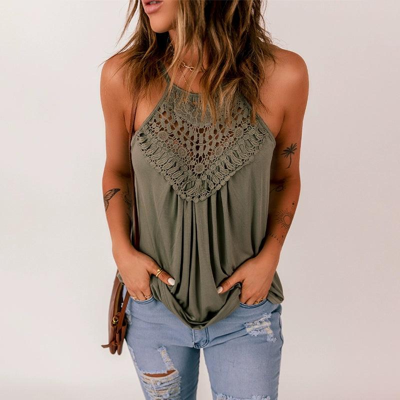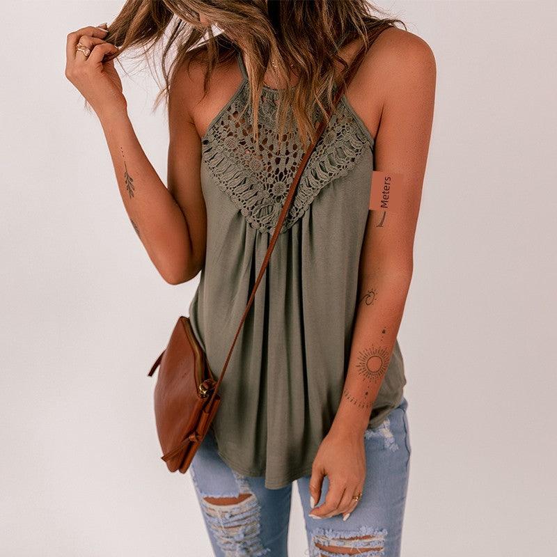 Opt for the Vest Fashion Fashion Pure Color Casual Sling Lace Top for its stylish appeal and exceptional quality. Versatile enough to pair with various outfits, this top stands out in your wardrobe. Plus, it's easy to maintain and perfect for all your summer outings!