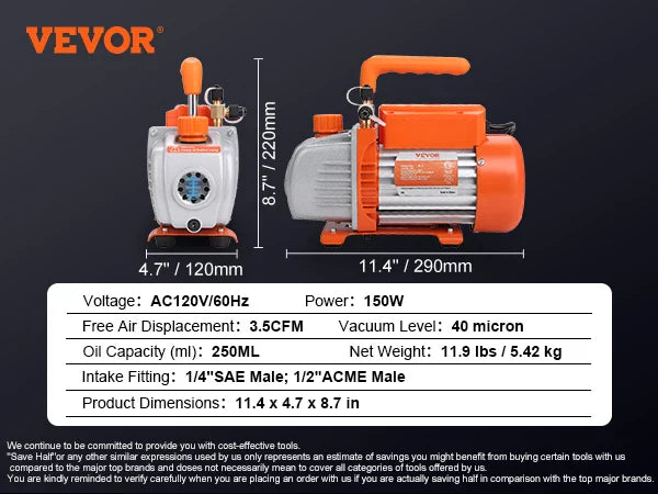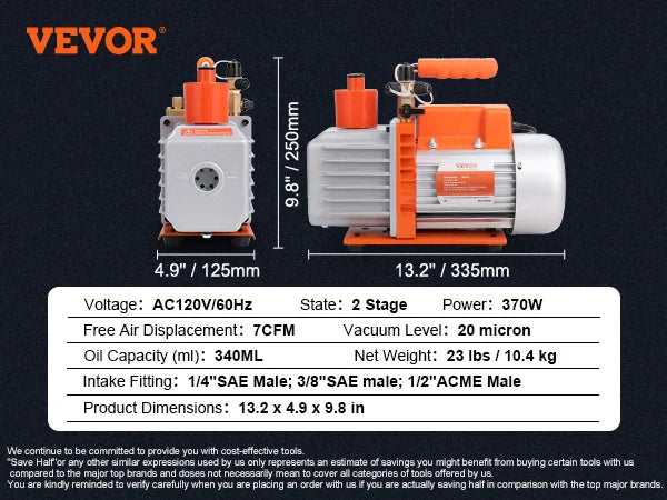 Unlock the potential of your HVAC systems with the VEVOR 1&2 Stage Vacuum Pump 3.5/5/7CFM AC120V HVAC Tool. This versatile tool is perfect for both professionals and DIY enthusiasts, delivering superior performance and unmatched efficiency for all your HVAC and refrigeration tasks.