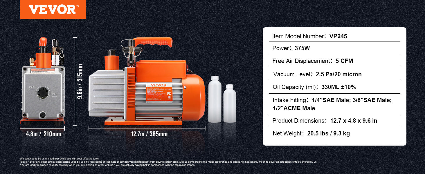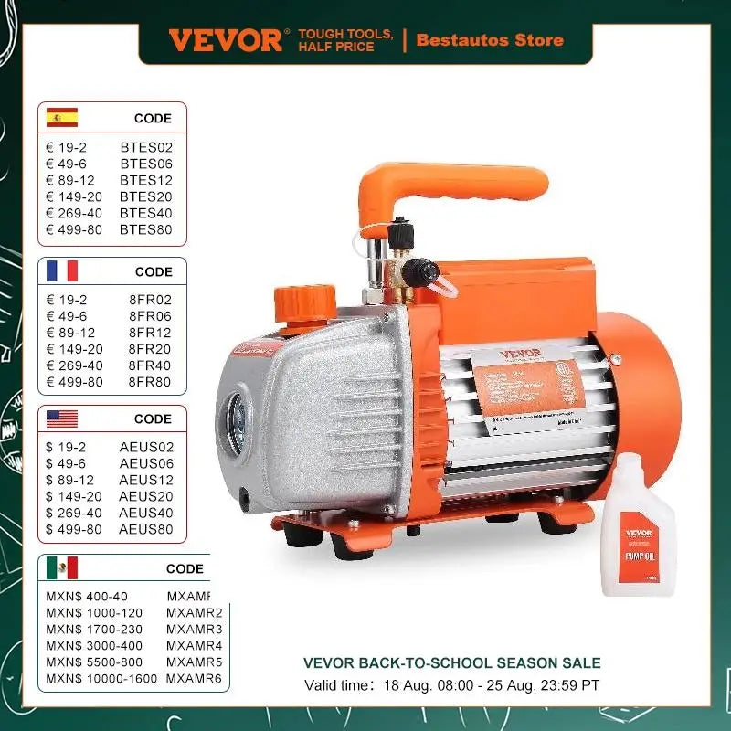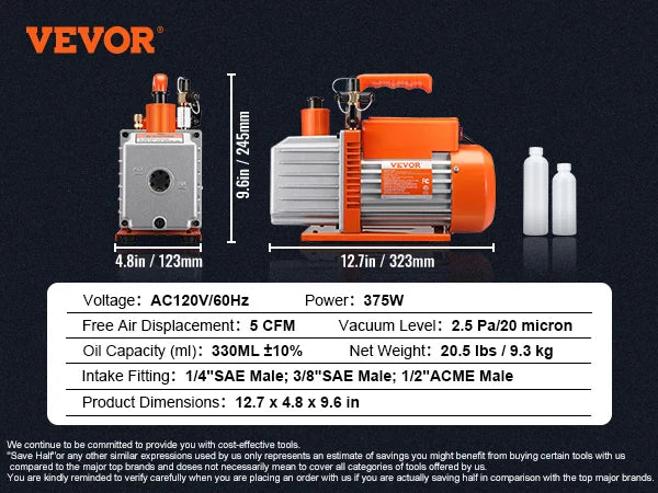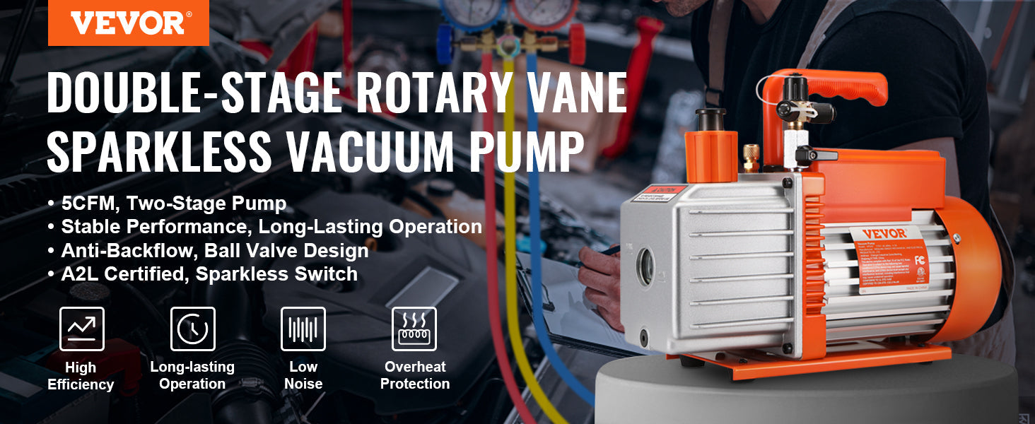 Choose the VEVOR 1&2 Stage Vacuum Pump 3.5/5/7CFM AC120V HVAC Tool for your HVAC and refrigeration maintenance tasks. Experience unmatched reliability, versatility, and performance. Order now and elevate your tool collection today!