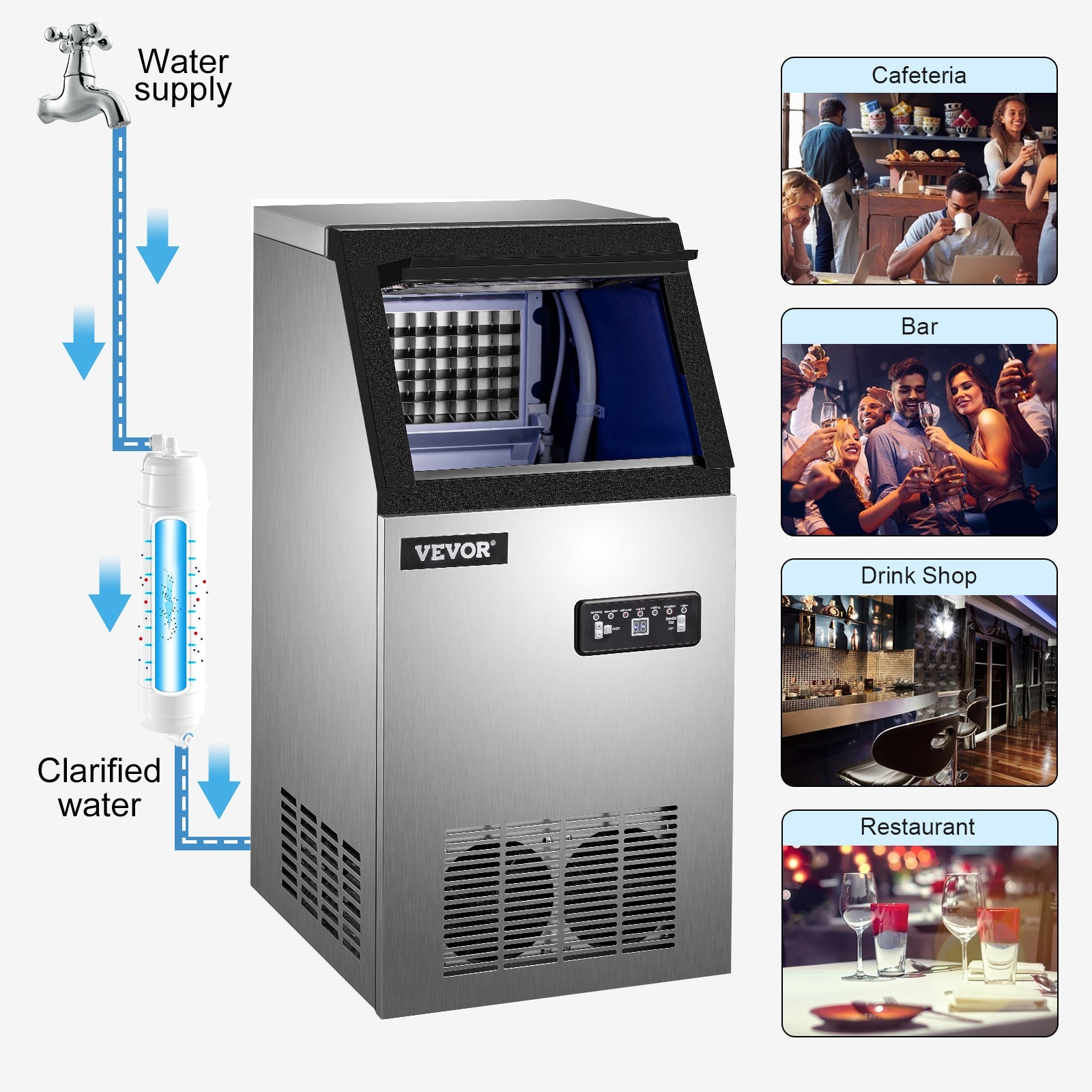 Don't let your establishment run out of ice! Experience the efficiency and convenience of the VEVOR 40KG 50KG 60KG 68KG 24H Commercial Ice Maker Machine today. Order now!