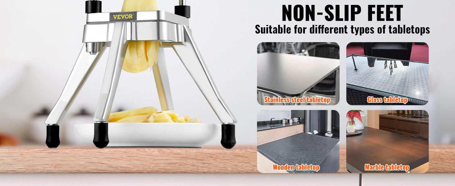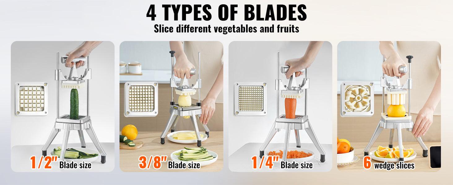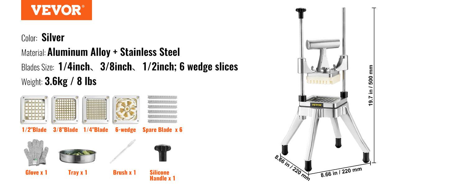 The VEVOR Commercial Vegetable Fruit Dicer Cutter Manual Chopper is perfect for preparing a variety of fruits and vegetables, making it ideal for salads, French fries, and much more. With food-grade stainless steel blades, you can ensure safety and hygiene in your food preparation.