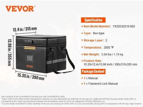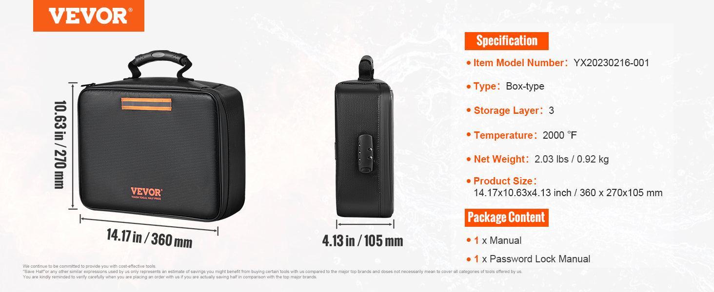 Don't compromise on the safety of your important items. Invest in the VEVOR Fireproof Document Bag with Lock 2000℉ Waterproof Box and enjoy the confidence that your valuables are secure and organized. Order now to safeguard what matters most!