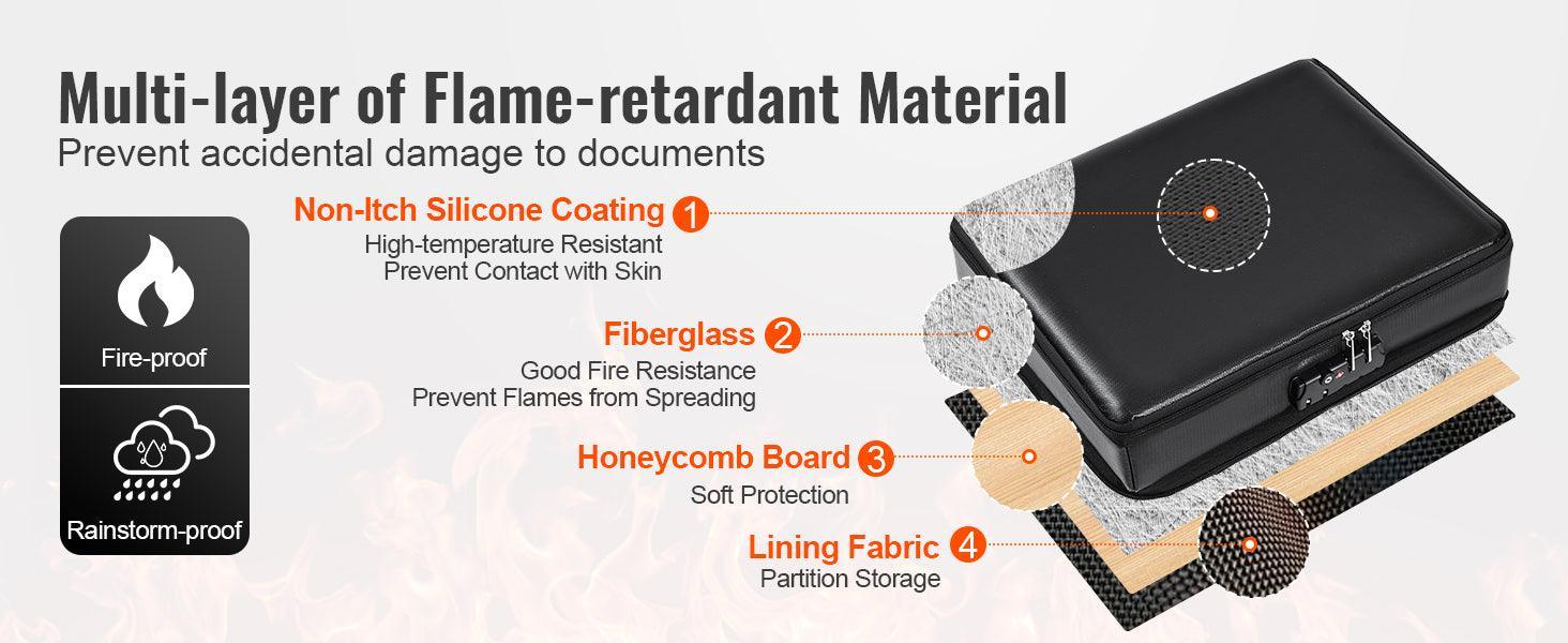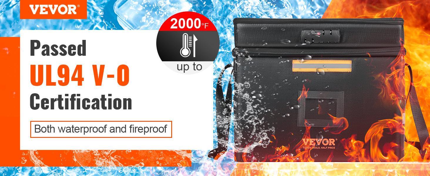 The VEVOR Fireproof Document Bag With Lock 2000℉ Waterproof Box is designed to safeguard what matters most—certificates, passports, cash, and jewelry—when heat or water threaten your essentials. Built with premium flame-retardant materials, it resists intense heat and features water-resistant fabric to prevent spills from reaching the contents. Its UL94 V-0 certification underscores a trusted level of fire safety, while the sturdy outer shell keeps form and function intact even in chaos.