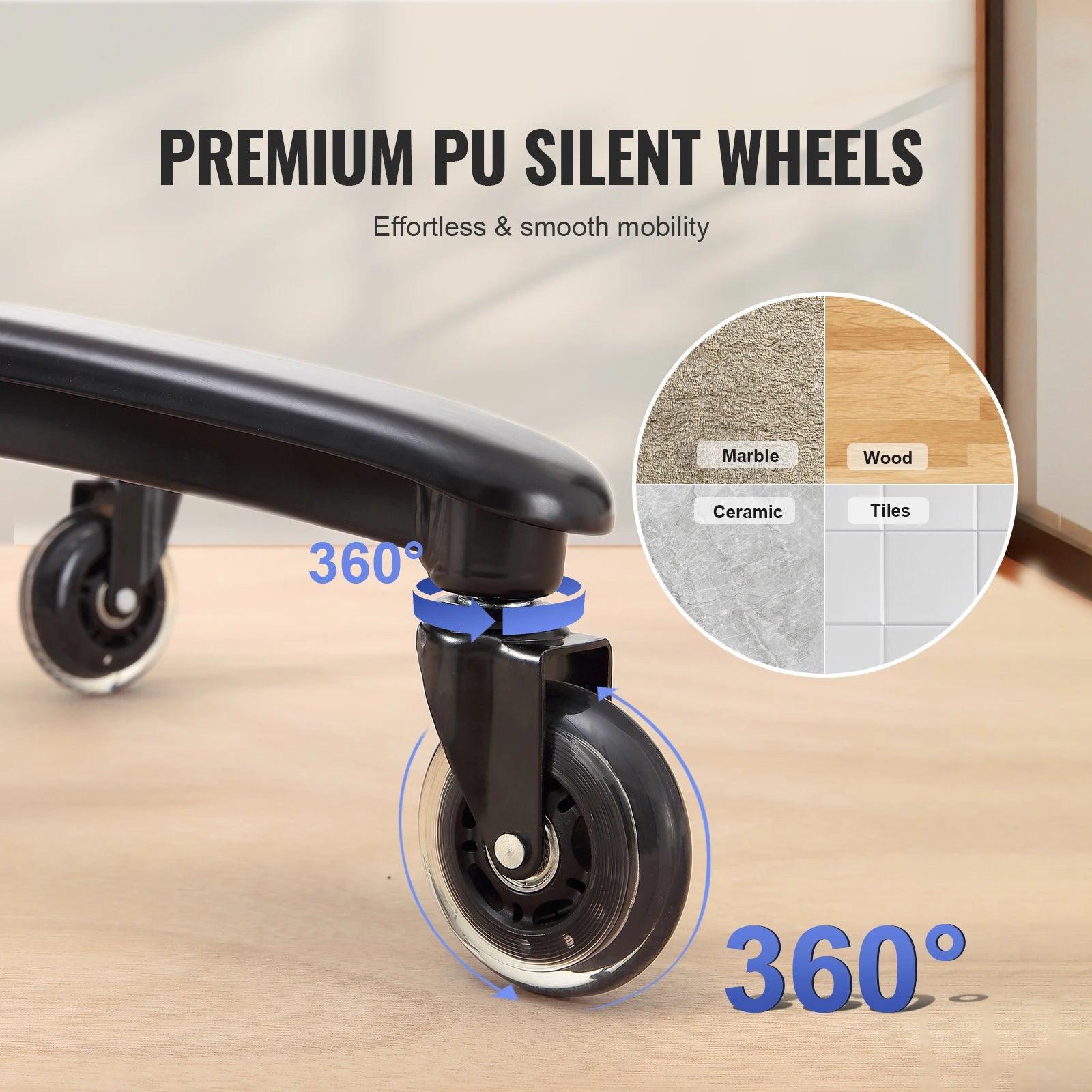 Equipped with high-quality PU silent universal casters, this chair ensures smooth, noiseless movement, facilitating seamless transitions between tasks.