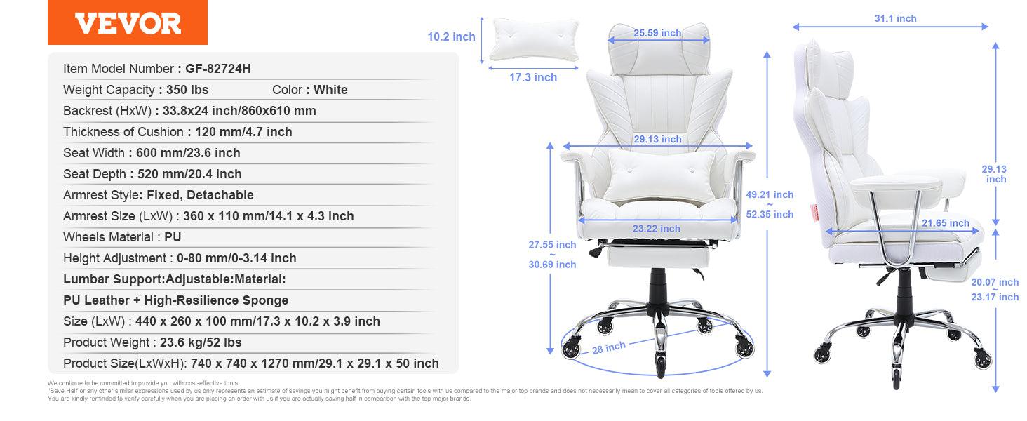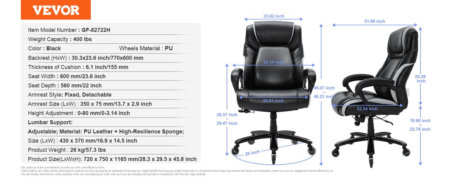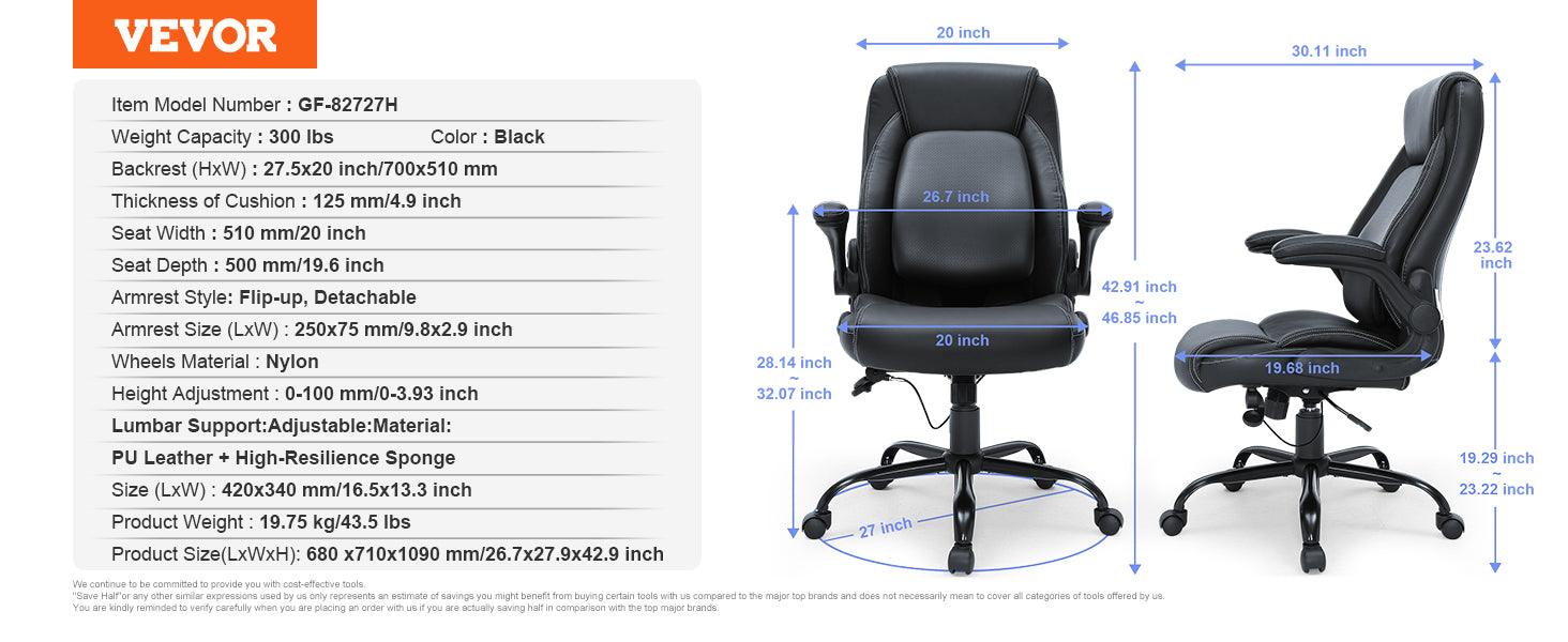 Invest in your comfort and productivity with the VEVOR Heavy Duty Executive Chair. Its sturdy design and luxurious materials allow you to work efficiently while looking great. Make your office a haven of productivity and comfort!