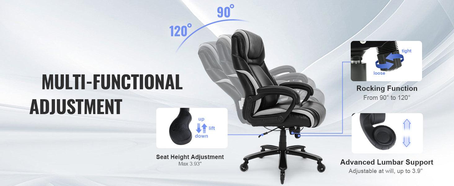 Transform your workspace with the VEVOR Heavy Duty Executive Office Chair with Adjustable Support. Designed for those who demand comfort and functionality during long hours, this chair is an essential addition to any office setting.