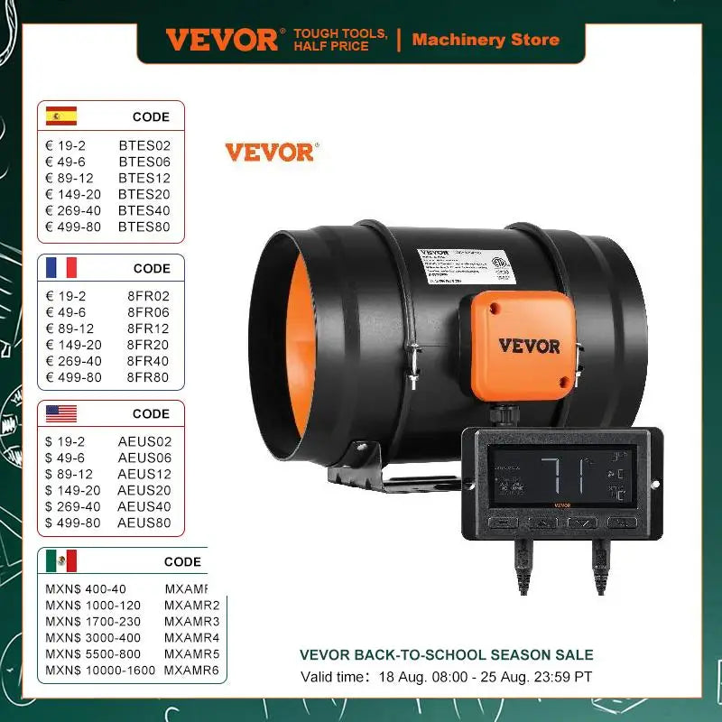 Order now and elevate your indoor air quality with the VEVOR Inline Duct Fan with Temperature Humidity Controller!