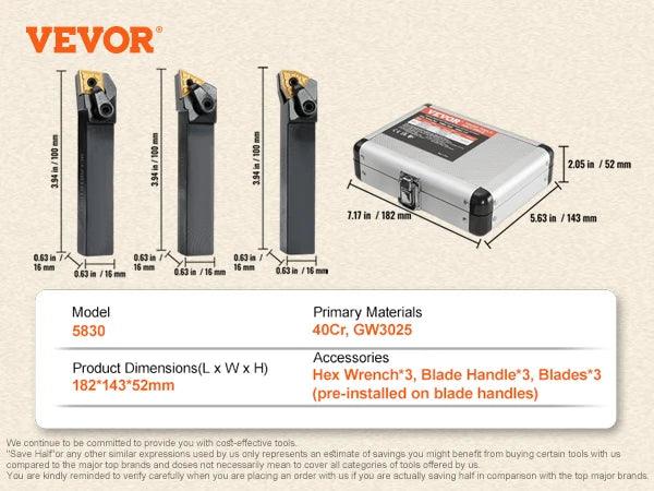 VEVOR 3/4/7 PCS Indexable Lathe Tool Holder Set Case Kit