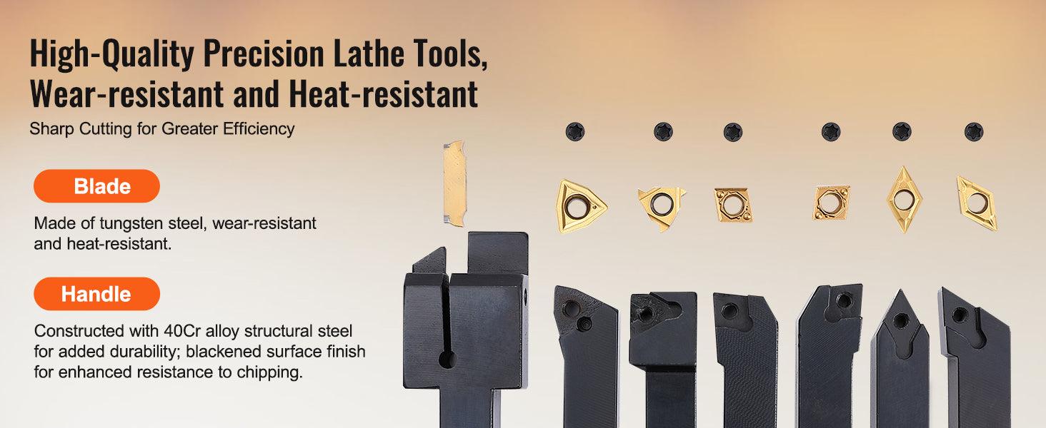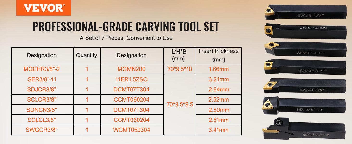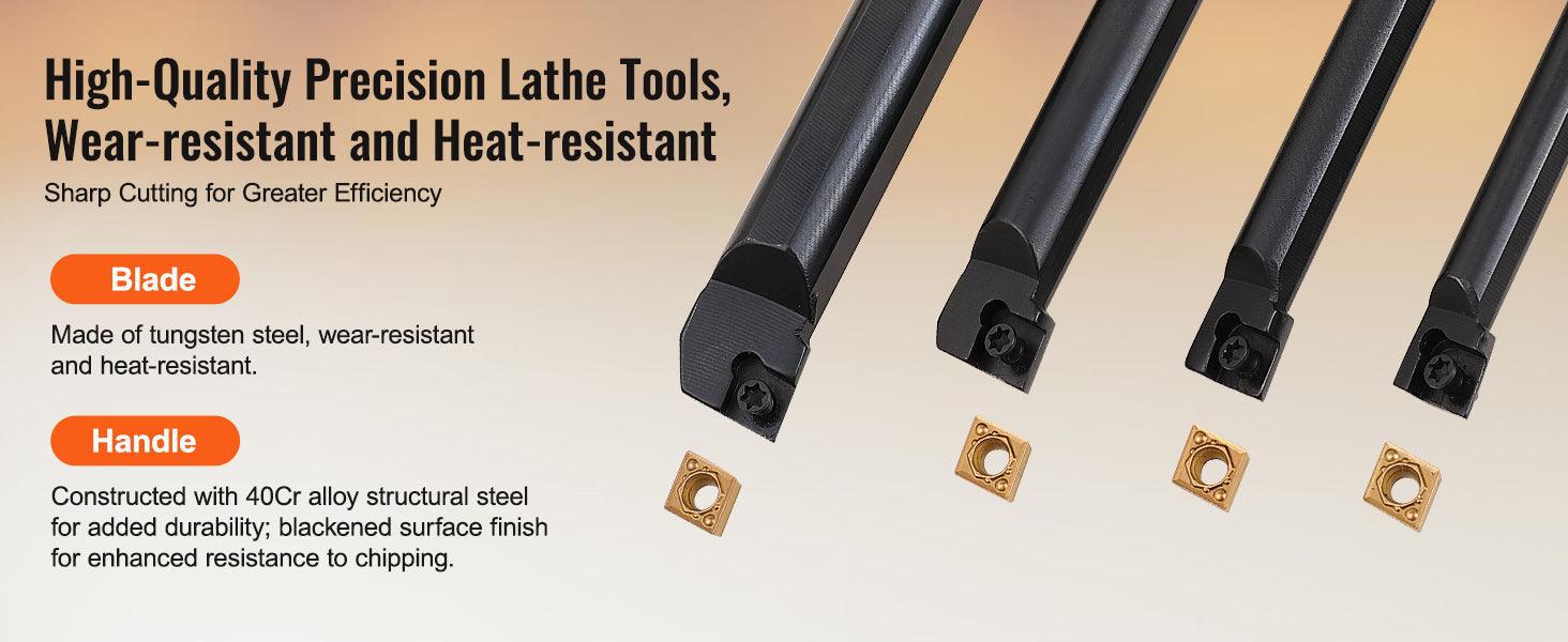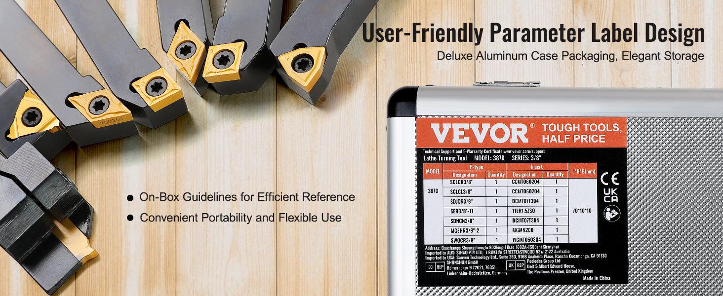 Elevate your lathe operations with the VEVOR 3/4/7 PCS Indexable Lathe Tool Holder Set Case Kit. This reliable partner ensures precision and quality in every cut, making it an essential addition to your workshop.