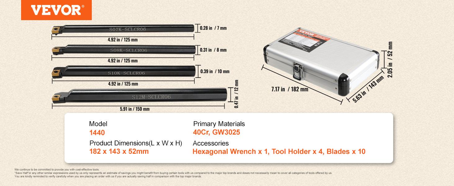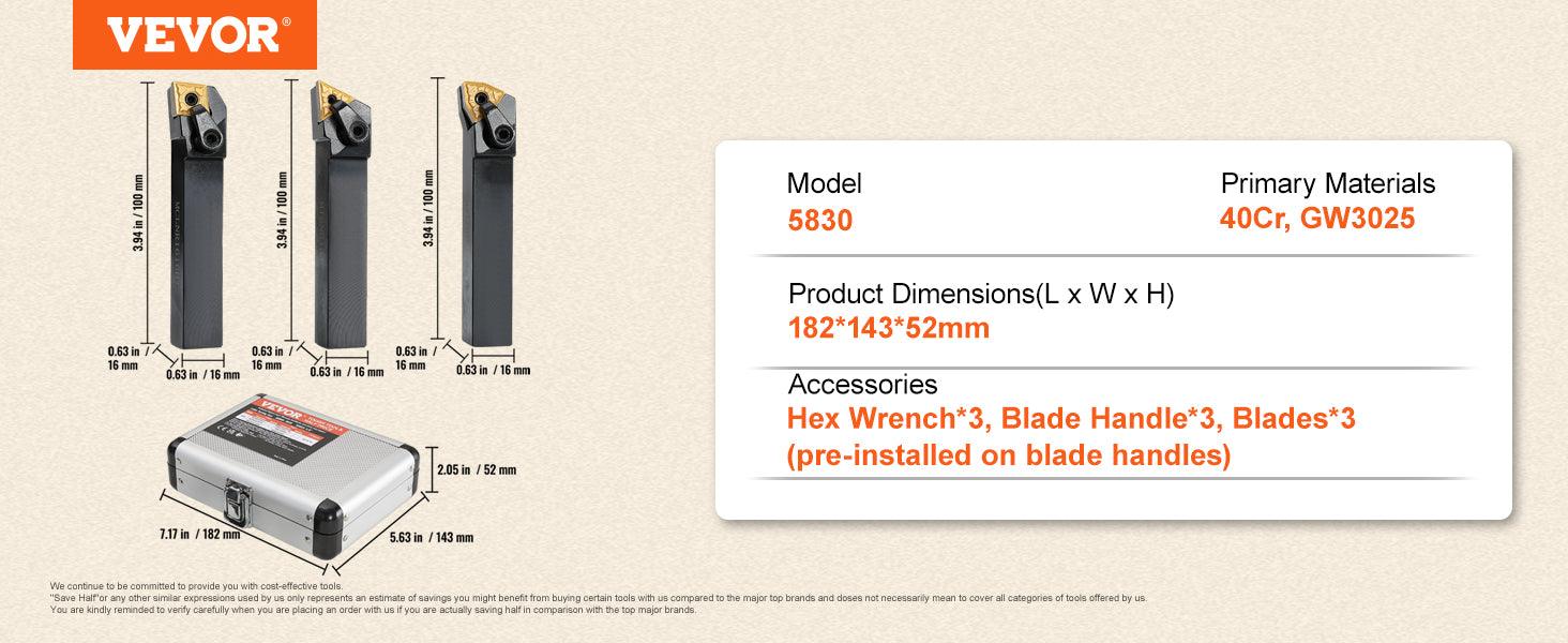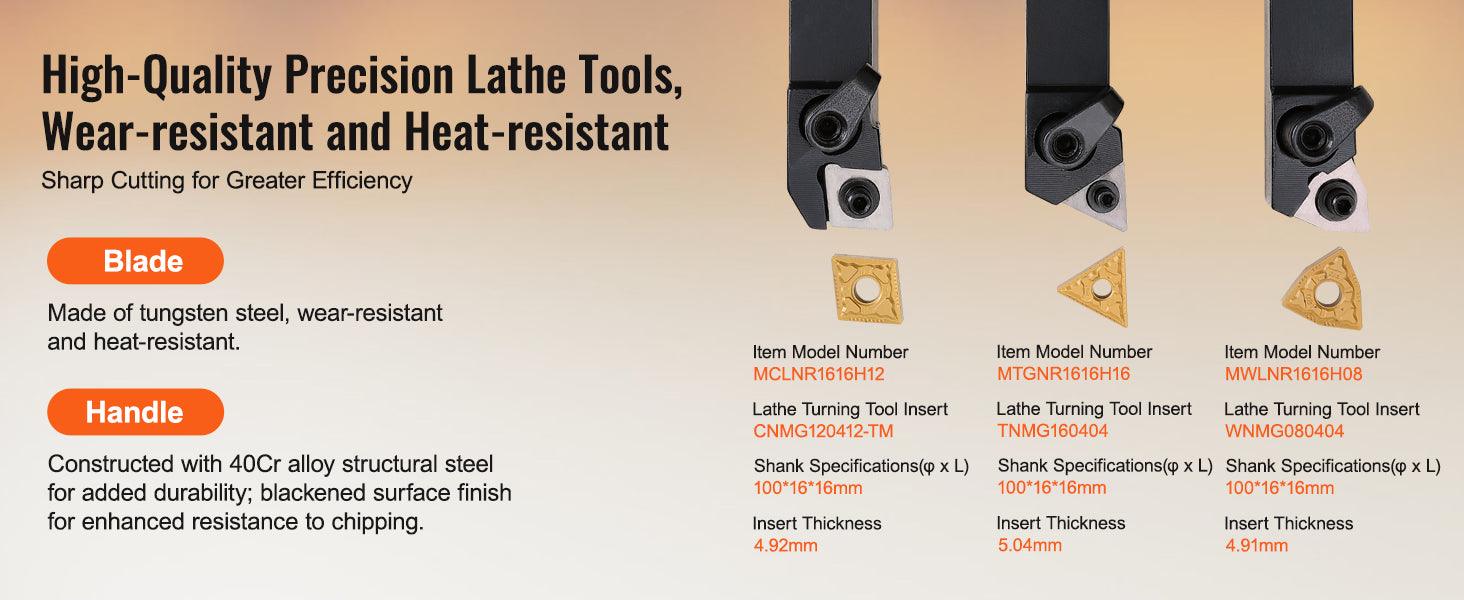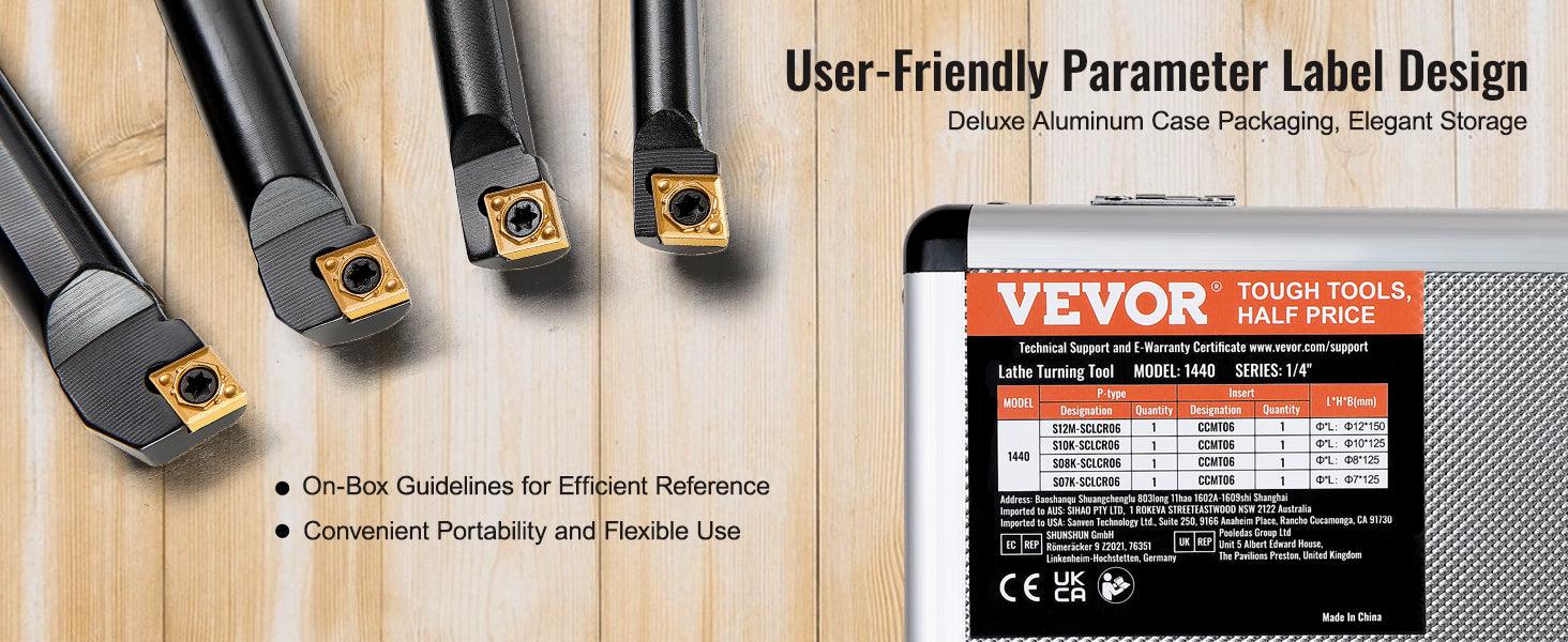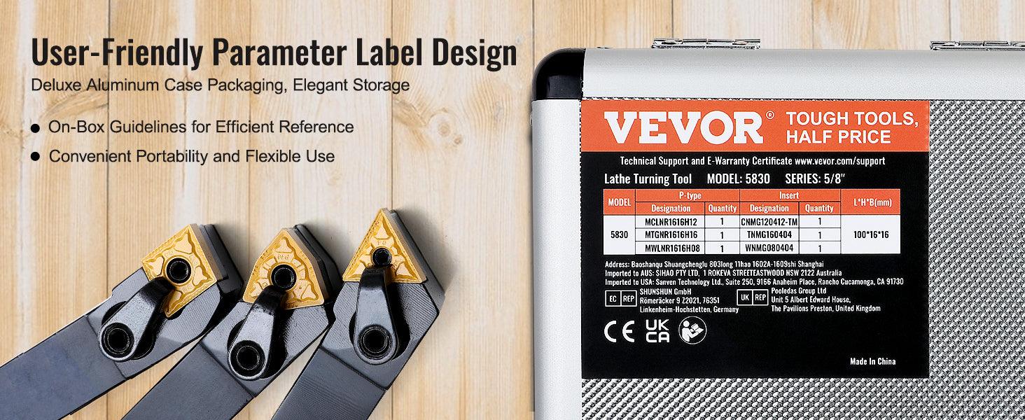 Elevate your lathe operations with the VEVOR 3/4/7 PCS Indexable Lathe Tool Holder Set Case Kit. This reliable partner ensures precision and quality in every cut, making it an essential addition to your workshop.