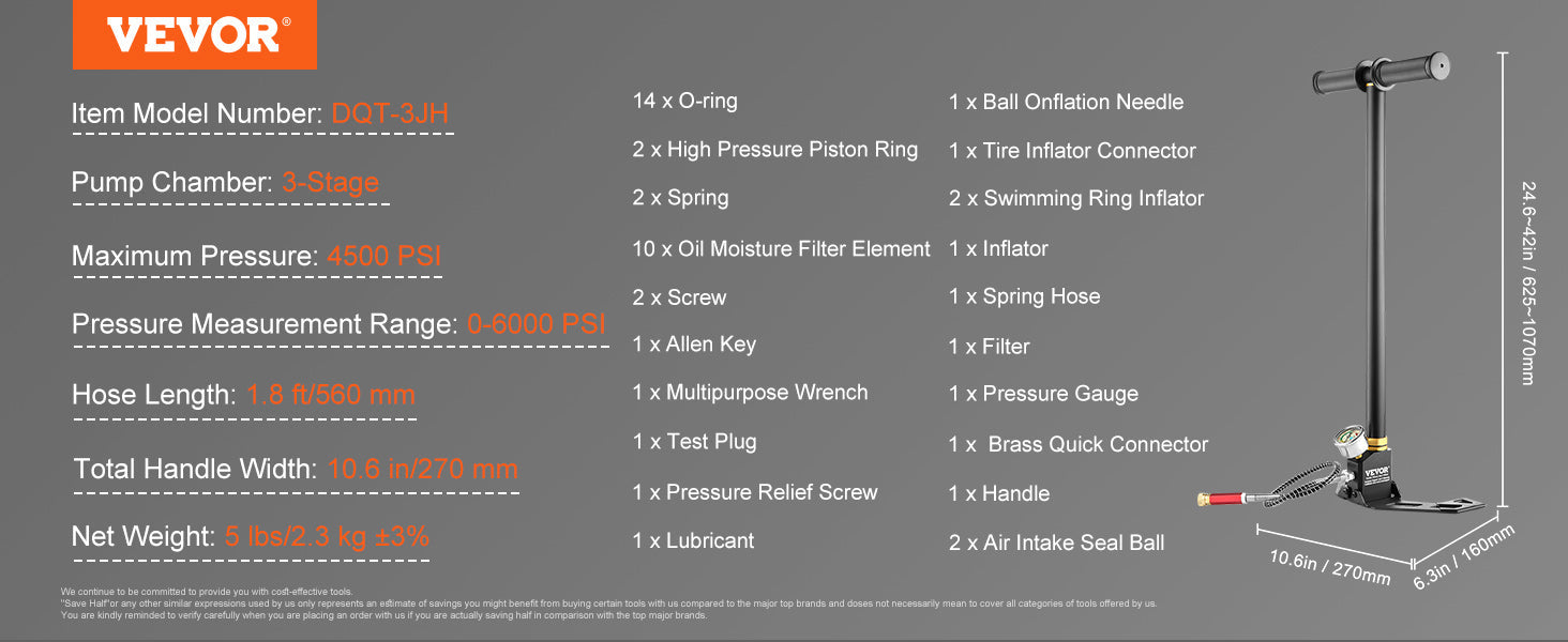 Invest in the VEVOR 3 Stage PCP Pump 30MPa 4500PSI Air Hand Pump Tool for unmatched reliability and performance. Say goodbye to cumbersome tanks and complicated setups! This pump guarantees convenience, efficiency, and durability for enthusiasts and professionals alike.
