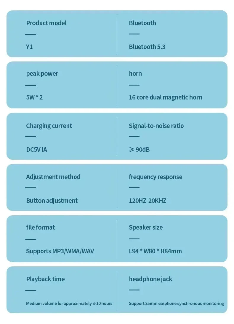 • Multiple Playback Options: Supports Bluetooth, TF card, and headphone modes, providing seamless connectivity and playback versatility.