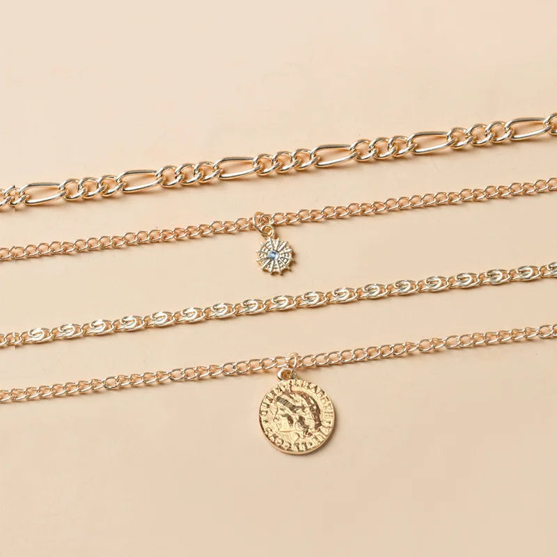 Elevate your accessory collection with our Vintage 18k Gold Pendant Layered Chain Necklace Set for Her. This exquisite set seamlessly combines elegance and modern trendiness, making every outfit a true statement piece.