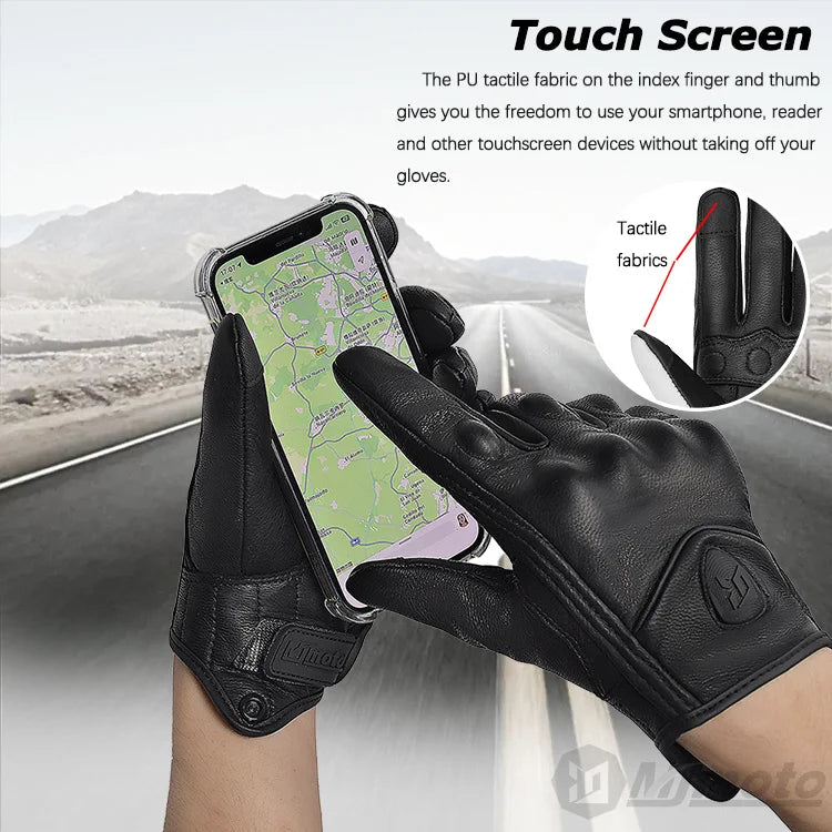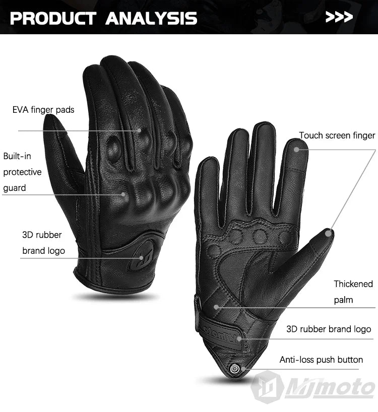 Whether you're into motocross, off-road riding, or cruising around town, our Vintage Black Leather Motorcycle Gloves for Men Biker Racing are your ideal companion. The retro design combined with modern technology makes these gloves a must-have for every biking enthusiast.