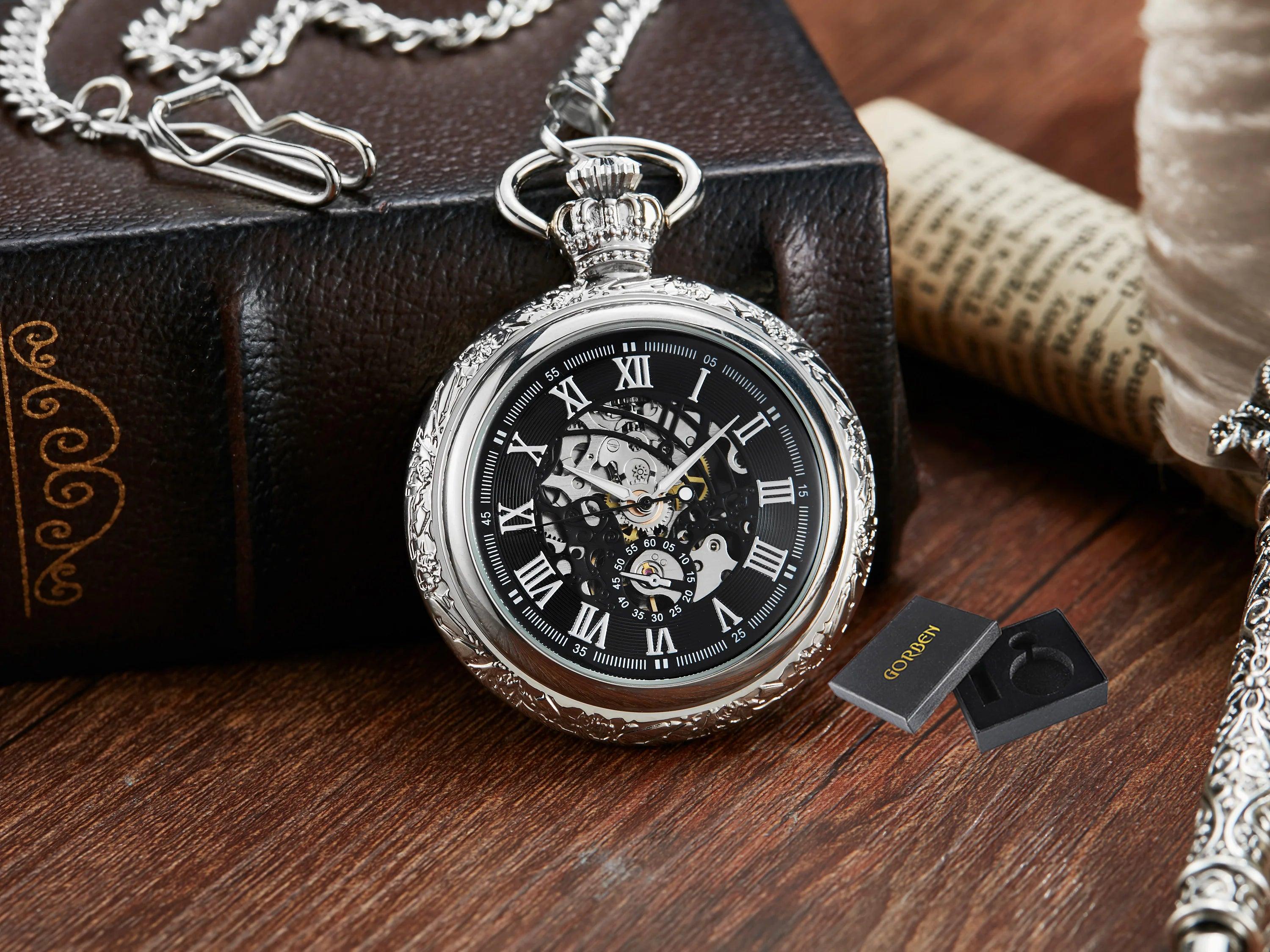 • Distinctive Design: Featuring an antique-style Roman numeral dial and captivating skeleton flip design, this pocket watch ensures you stand out in any setting.