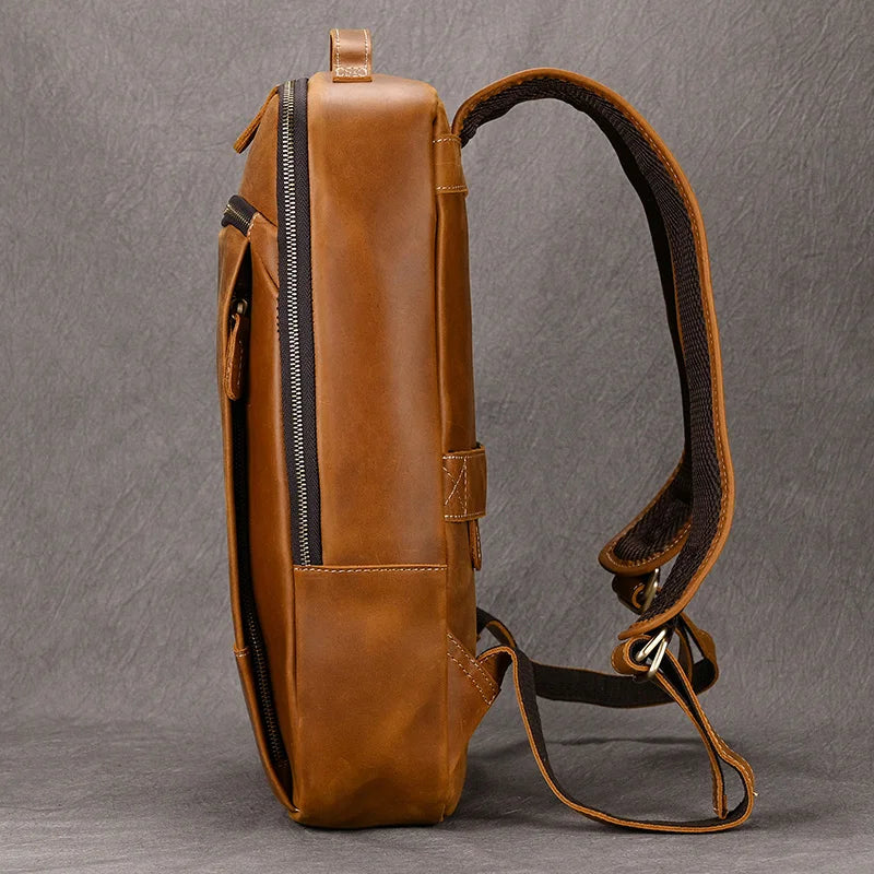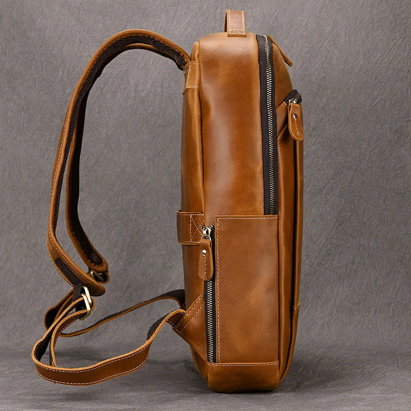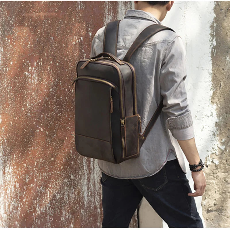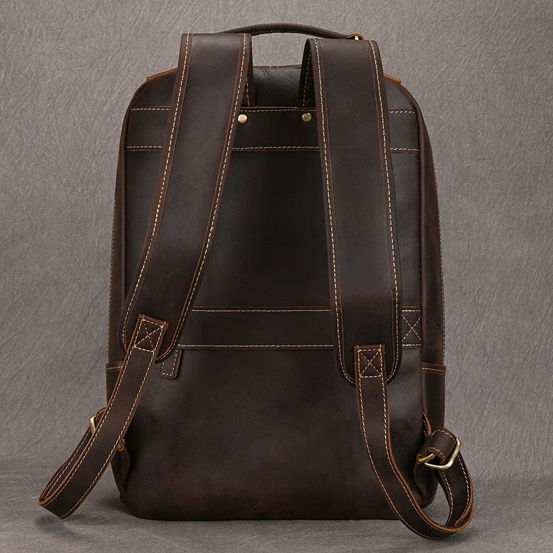 Men's Retro Crazy Horse Leather Backpack for 15.6 Inch Laptop